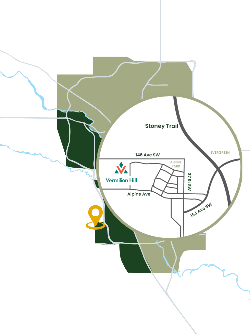 Vermilion Hill is ideally located in southwest Calgary, offering residents easy access to major roadways, shopping centers, and recreational facilities, while maintaining a peaceful, community-focused atmosphere.