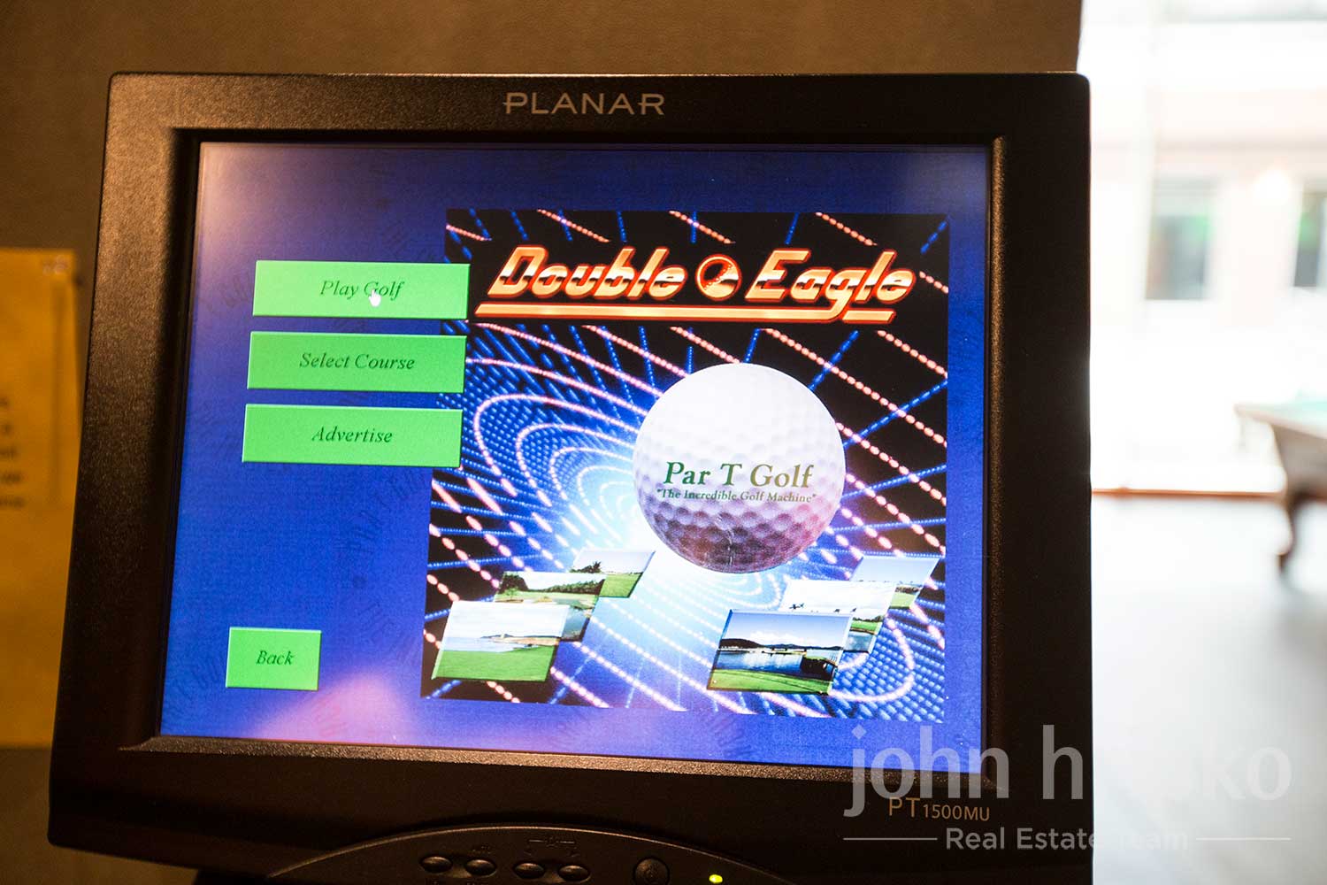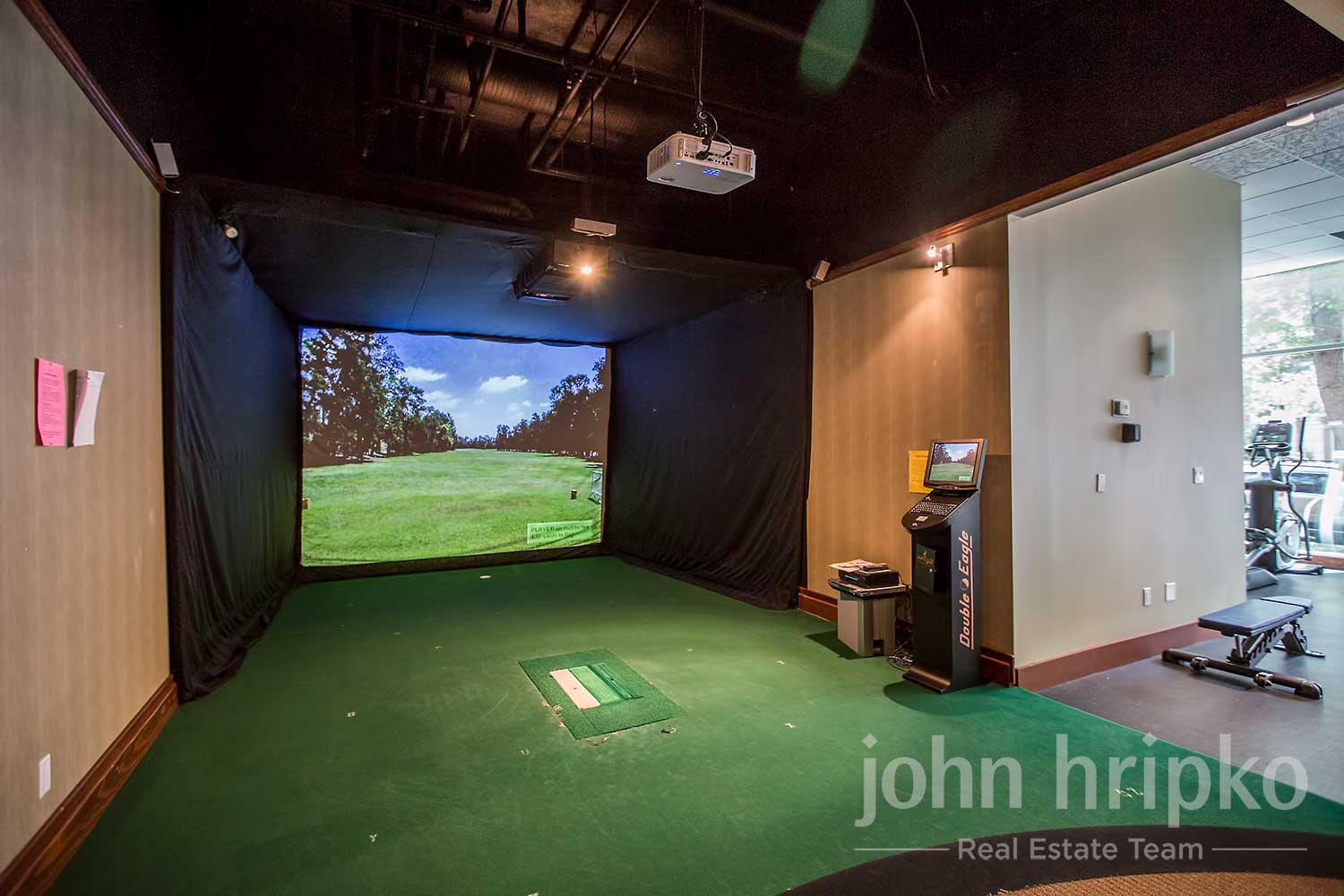 Games Room with Golf Simulator: A recreational space featuring a golf simulator and foosball table for entertainment.
