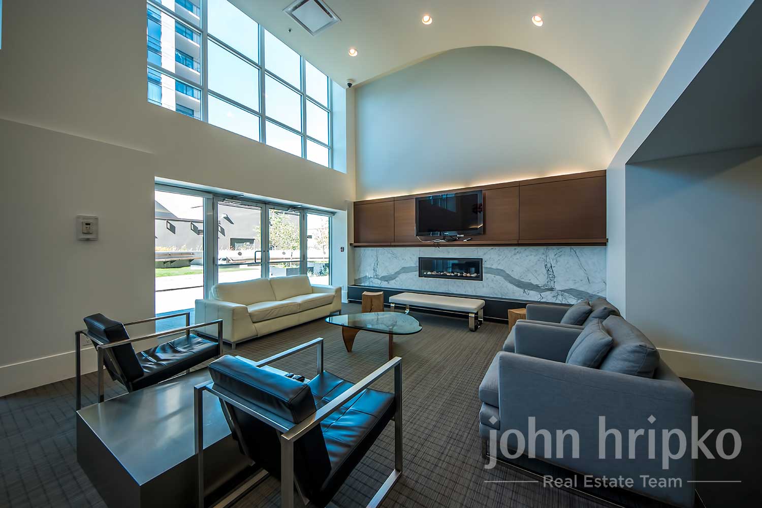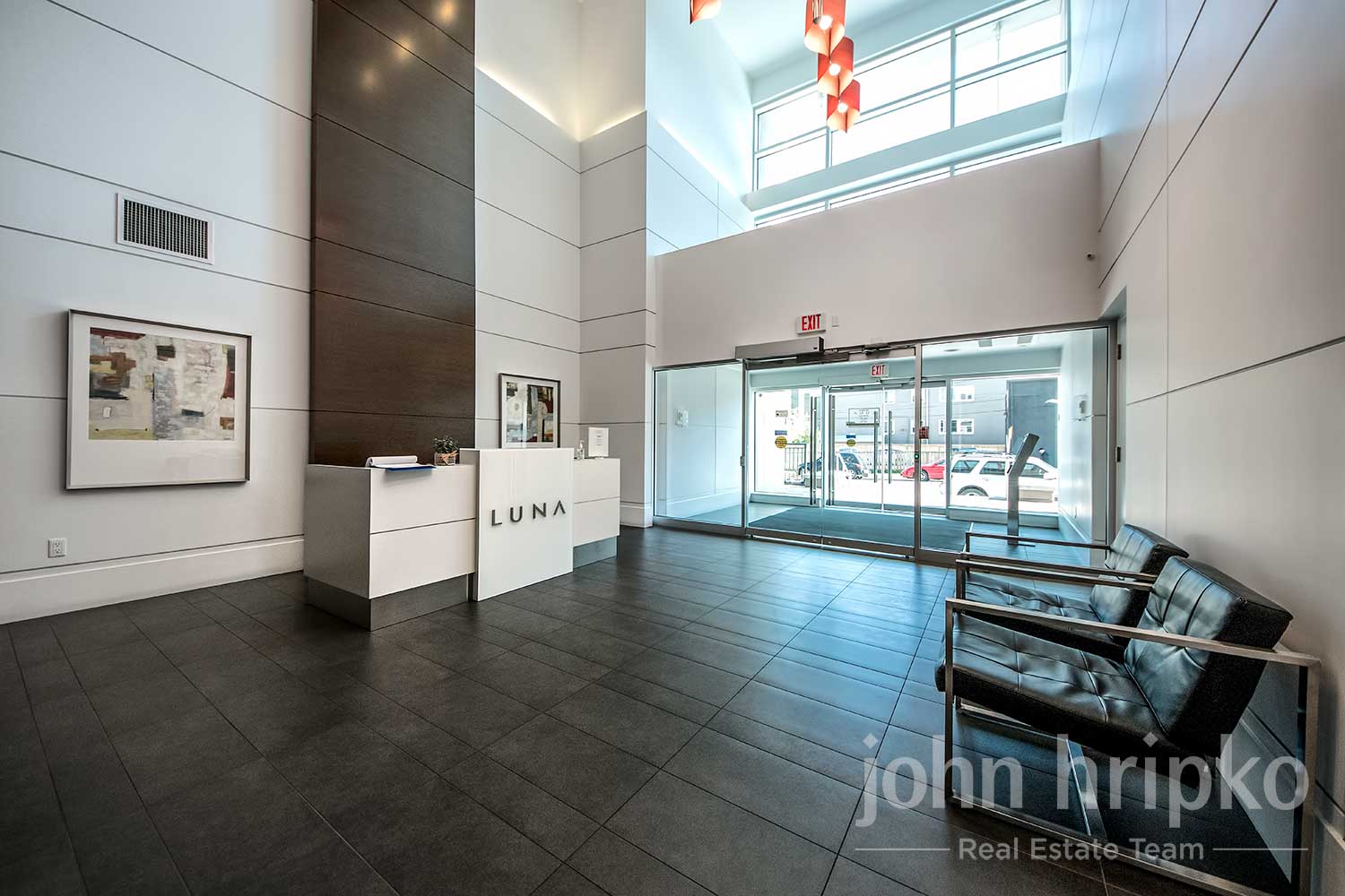 Luna showcases open-concept floor plans with upscale finishes, including 9-foot ceilings, stainless steel appliances, quartz countertops, and floor-to-ceiling windows that provide expansive city views.