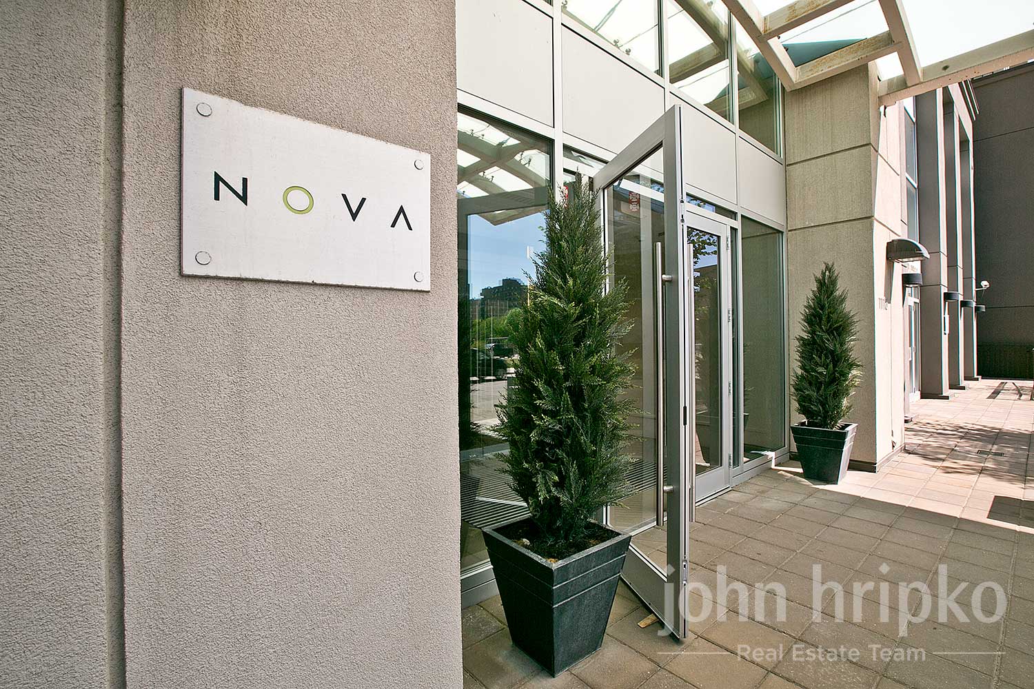 Nova showcases open-concept floor plans with upscale finishes, including 9-foot ceilings, stainless steel appliances, quartz countertops, and floor-to-ceiling windows that provide expansive city views.