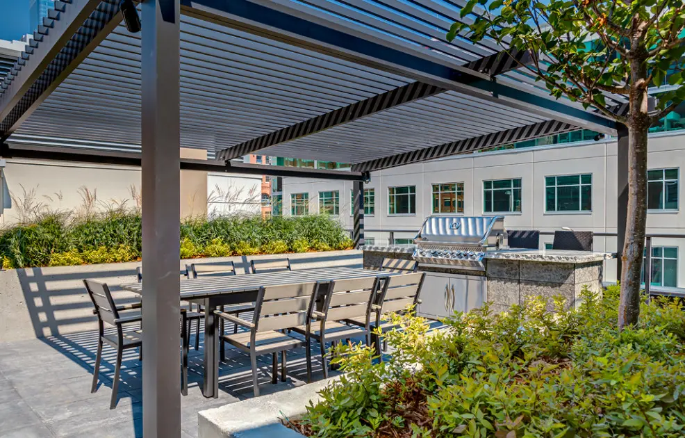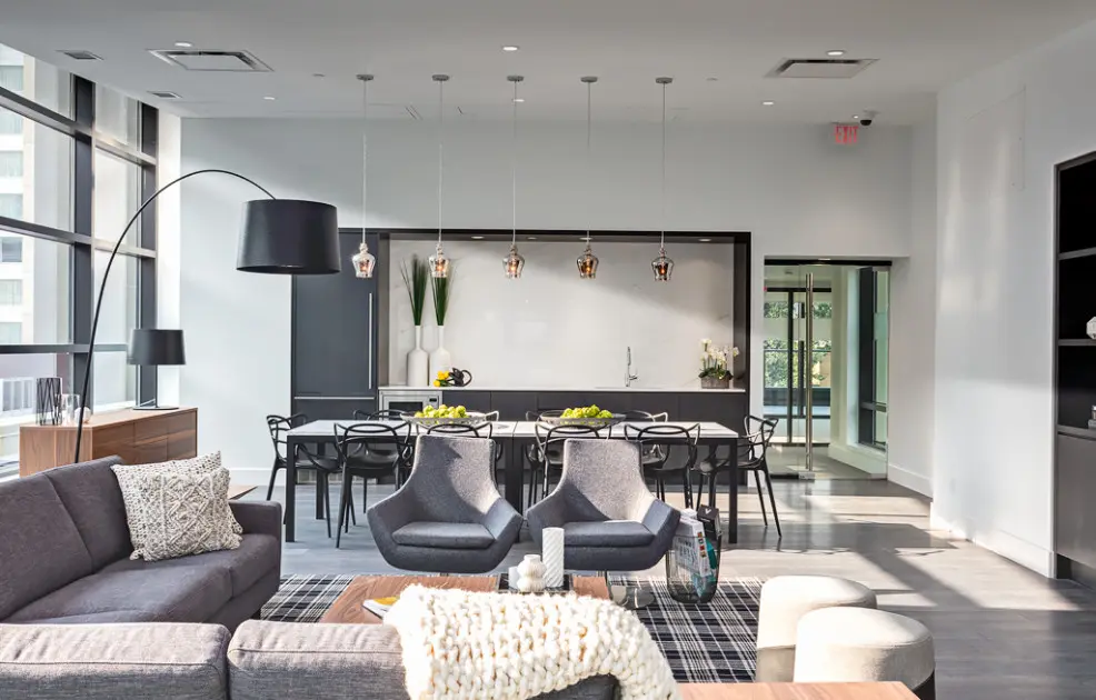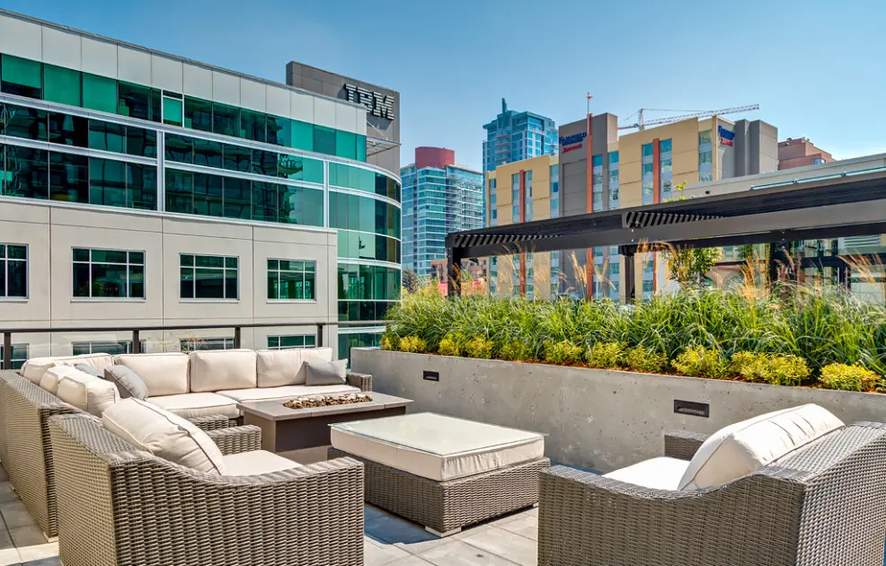 The building offers over 9,000 square feet of indoor and outdoor amenities, including a fully equipped fitness facility overlooking Memorial Park, an infrared sauna, a Zen terrace with a fire pit, barbecue and outdoor dining areas, a yoga/Pilates studio, and a residents’ lounge. Additional conveniences include concierge service, secured underground parking, and bicycle storage.