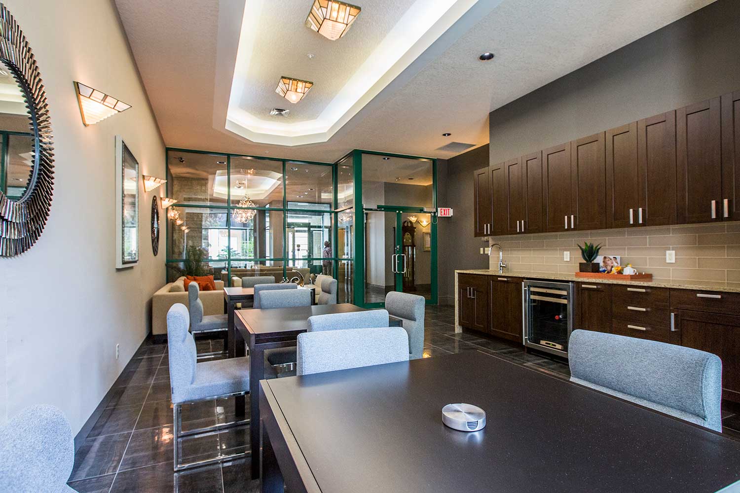 Social Room: Plenty of seating and a fully equipped kitchen, available for private functions.