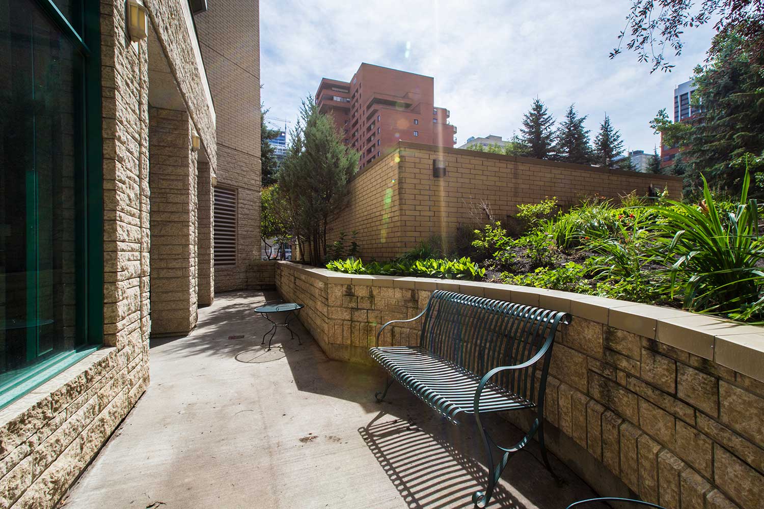 Residents of Eau Claire Lookout enjoy a range of upscale amenities, including a recently renovated lobby, a fitness room with a large-screen TV, a social room for private functions, and a library on the 14th floor with stunning views of the Bow River and city skyline. The 10th floor features an outdoor patio with a herb garden, and the building offers two levels of heated underground parking with a car wash bay.