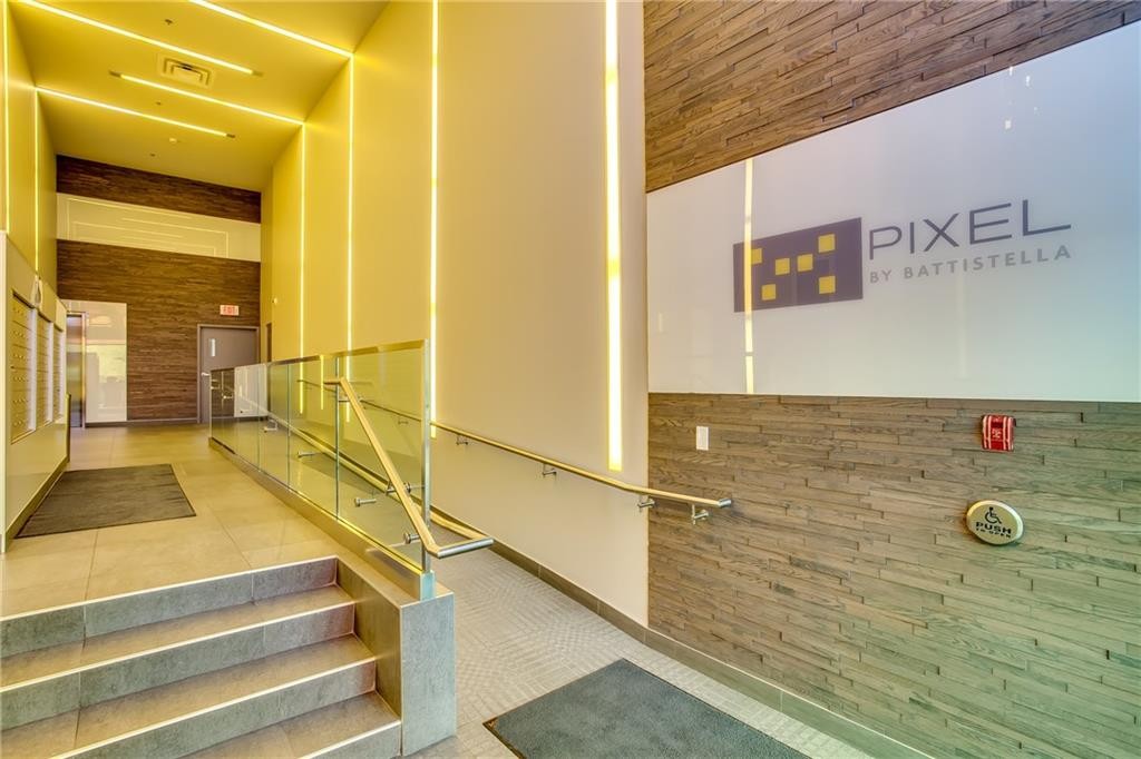 Featuring a mix of 81 flats and 17 townhome style condos and a communal rooftop patio, this residential development project brings added density and vibrancy to the area. PIXEL’s lobby boasts a stained glass feature and colourful inlaid lighting.