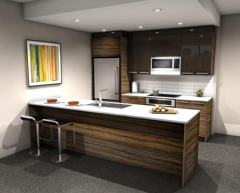The suites come fully furnished with quartz countertops, central A/C, concrete floors, and an all-in-one clothes laundry machine. Each suite comes with an indoor bicycle storage spot and 91 suites (excluding the 20 studio suites) also have a parking space in the underground garage. Each suite has access to the roof where there is a public garden and patio.