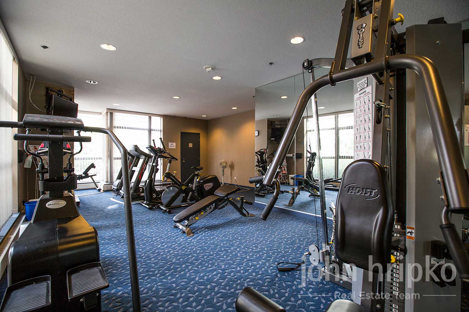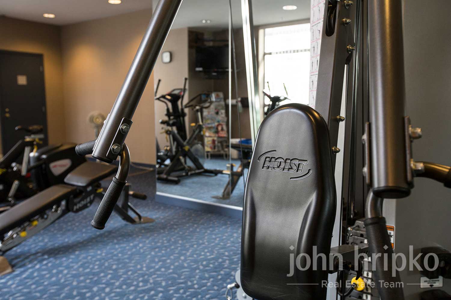 For special occasions, residents can book the meeting room, which is fitted with a kitchen, fireplace, and stereo. The meeting room also provides access to a patio and serene courtyard. For active residents, a fully equipped gym is available in the building.