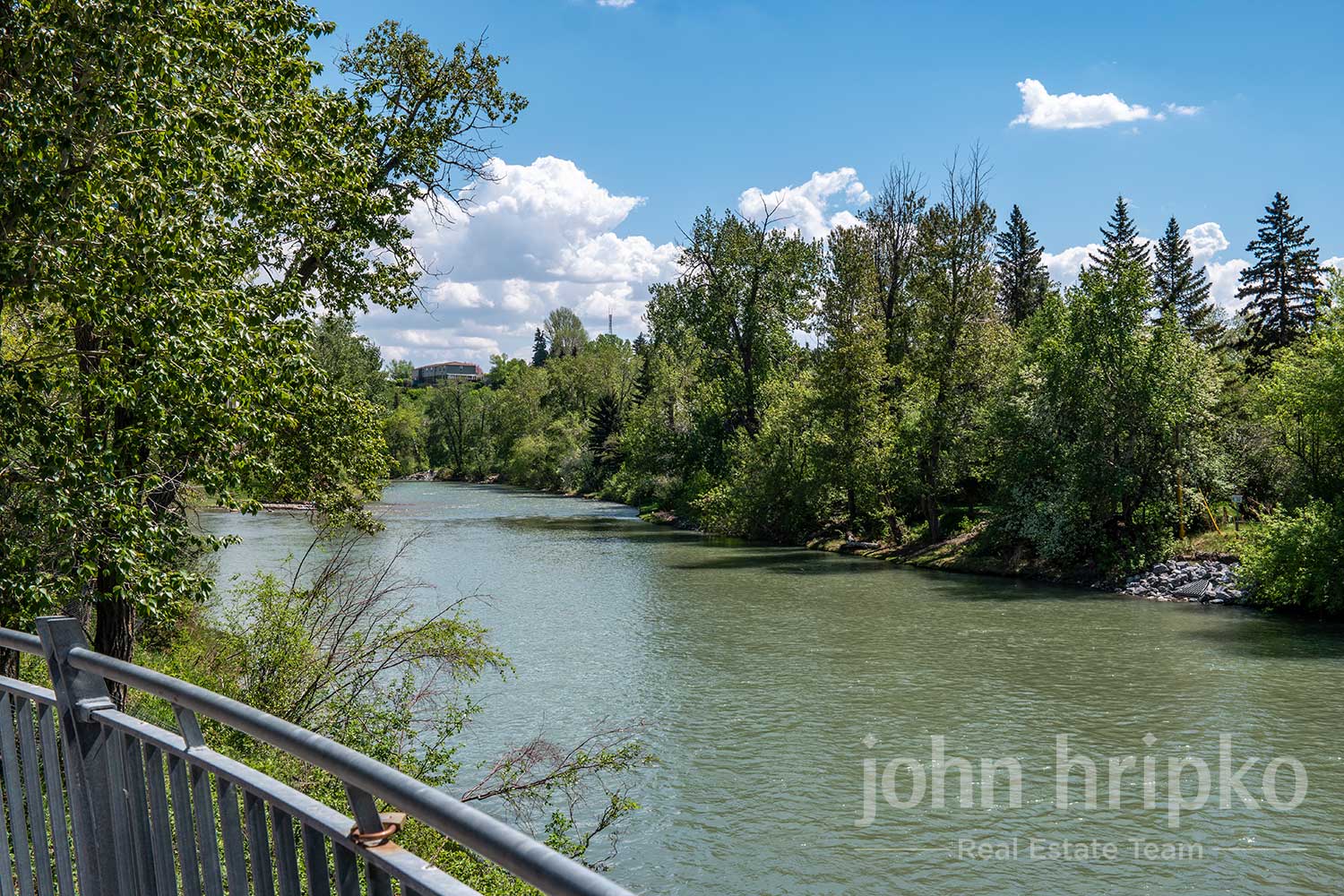 Flanking the east and south borders of the neighbourhood , the Elbow River pathway system provides access to scenic riverfront trails perfect for jogging, biking, or leisurely walks.