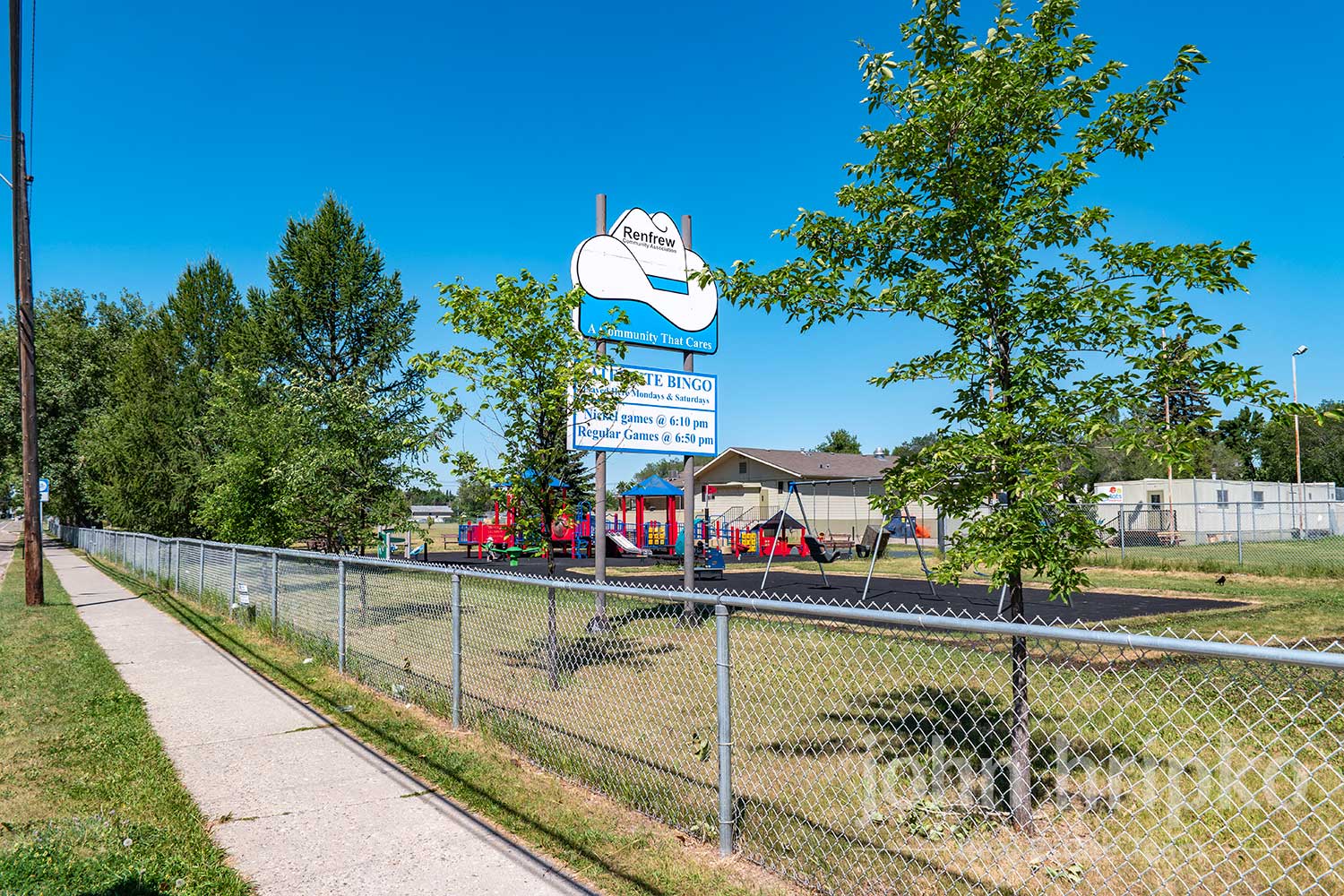 A full-sized football field is located at Renfrew Athletic Park. Parkland and green space are not abundant with the exception of the school grounds, and the area adjacent to Nose Hill creek, which includes the McInnis & Holloway Memorial Forest. Other athletic facilities in addition to the schools include the Boys & Girls Club, a swimming pool, indoor skating rink, an outdoor skating rink at the community association complex, plus soccer fields located by the creek.