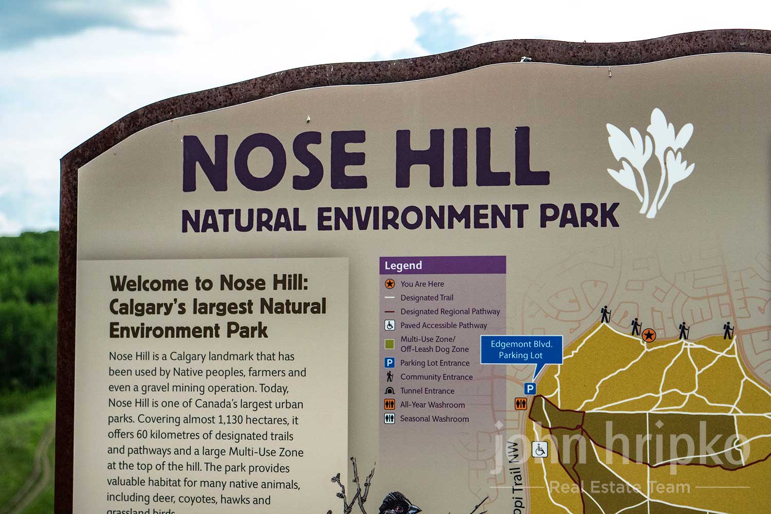 Nose Hill Park, one of Calgary’s largest natural parks, borders the southern edge of the community and offers hiking and biking trails, off-leash areas for dogs, and stunning views of the city and surrounding areas.