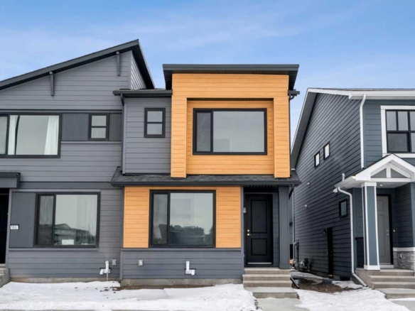 The community includes vast stretches of natural terrain and intentional softscape design, including pathways that connect to the Bow River trail system. A future commercial hub and homeowners association facility promise lifestyle-oriented amenities such as an outdoor pool, skating rink, and clubhouse—all within walking distance.