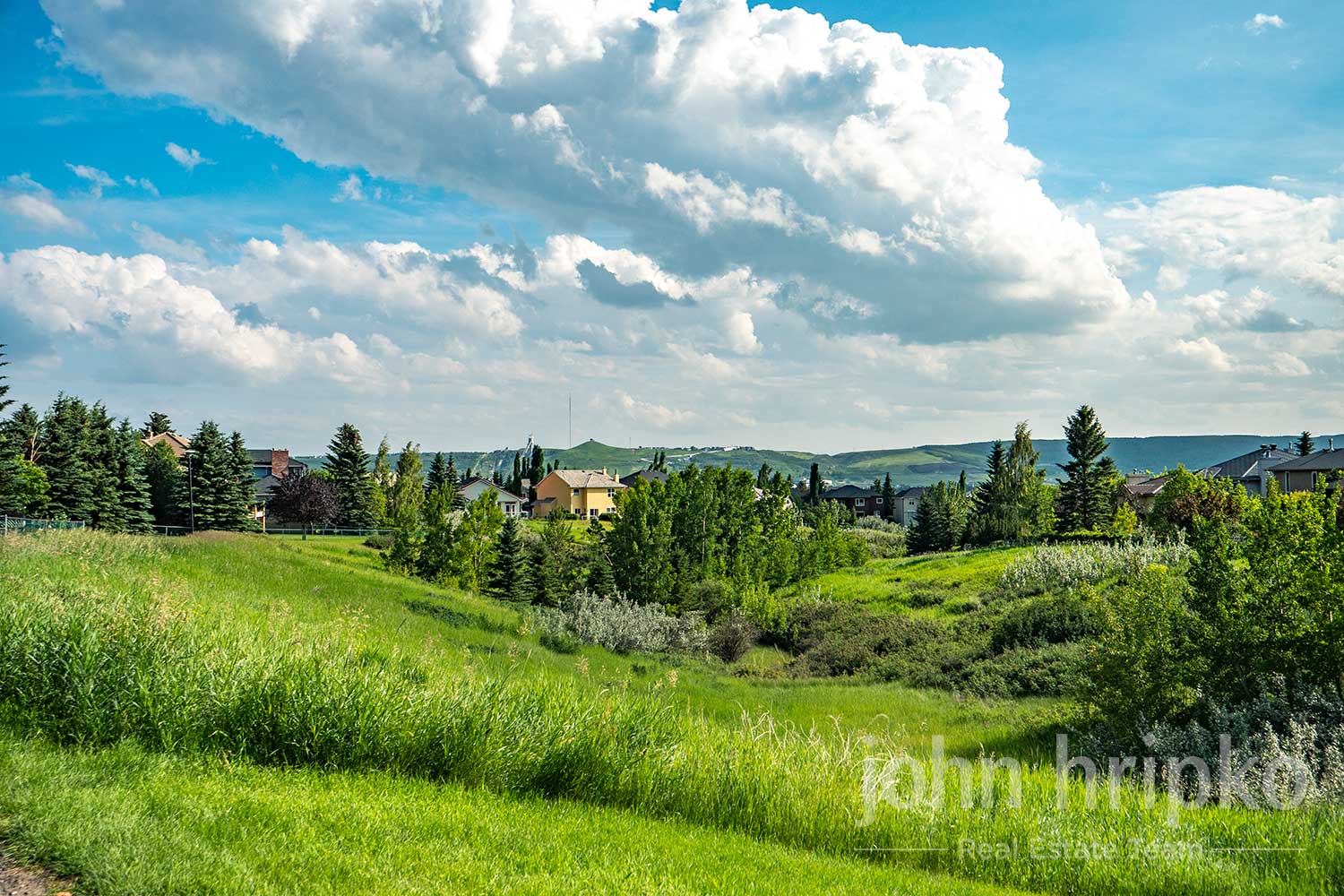 The community is nestled in a scenic area with excellent access to both the mountains and downtown Calgary, offering a suburban feel while being well-connected to key parts of the city.