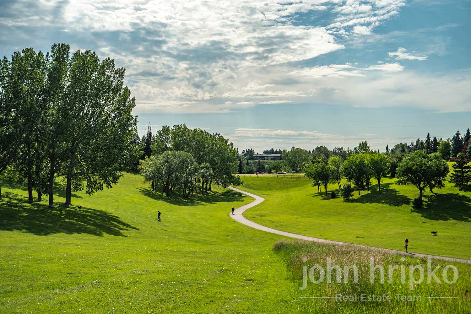 Located just south of Varsity, Bowmont Park offers extensive trails for walking, biking, and enjoying nature along the Bow River.