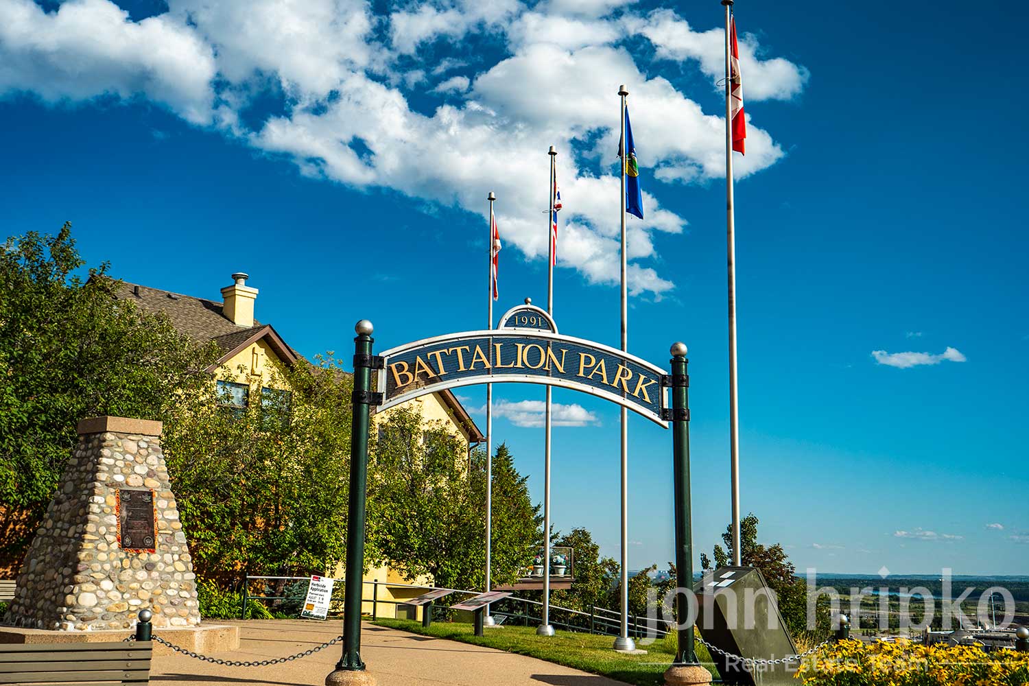 On its Southern slopes, the Battalion Park Interpretive Centre is located on a bluff and features military monuments and stunning mountain views. There are also several large playing fields which host any number of community activities year-round.