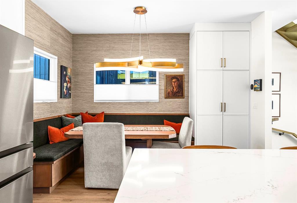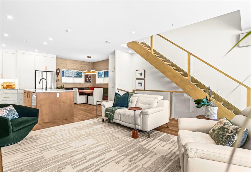 Welcome to the alpine sanctuary of Raven’s Peak in the heart of majestic Canmore — Completed in 2023 by a local homebuilder, this like-new 3-bedroom, 3-bathroom townhome blends thoughtful craftsmanship with refined modern design. Every detail feels intentional. Every space feels elevated. Step into the living room and feel the immediate impact of a dramatic floor-to-ceiling wall of triple-pane windows — a stunning architectural statement that perfectly frames the grand mountain views beyond. Sunlight pours across rich hardwood floors, while soundproof, thermal-blocking glass keeps the summer heat and winter chill exactly where they belong — outside. Whether it’s sunrise alpenglow or a snow-dusted evening skyline, the striking peaks of the Canadian Rockies become your ever-changing artwork.The heart of the home is a showpiece kitchen anchored by a prominent quartz island — sleek, sculptural, and ideal for entertaining. High-end stainless steel appliances complement clean modern lines, while a cozy breakfast nook invites slow mornings with coffee and mountain views just beyond the glass. It’s a space that effortlessly transitions from lively dinner parties to quiet, intimate evenings. The primary bedroom is nothing short of breathtaking. Imagine waking up to unobstructed mountain views — visible directly from your pillow. No buildings. No rooftops. Just stars, peaks, and bright blue sky. Spacious and serene, this retreat offers the kind of daily inspiration that never grows old.Beyond beauty lies performance. A highly efficient geothermal system provides sustainable heating and cooling year-round, delivering exceptional comfort with reduced environmental impact. Triple-pane windows enhance both efficiency and tranquility, creating a peaceful indoor environment in every season.Practicality is equally refined. A convenient mudroom and bathroom sit directly off the garage — ideal after mountain adventures. The single attached garage features durable epoxy flooring and a slatwall organizing system to keep all your gear in order. An exterior hose makes clean-up easy after hikes or bike rides, and the fenced front patio offers a private space to relax in the alpine sun & air.Perhaps most coveted of all — direct pedestrian access across the street to downtown Canmore. Leave the car behind and stroll to cafés, boutiques, groceries, dining, and trailheads within minutes, or take Canmore’s free public transit. This is more than a townhome.