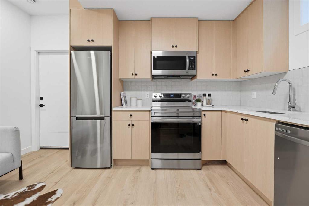 Move into the heart of South Calgary today with this brand-new, walkout townhome that perfectly blends luxury, location, and low-maintenance living! Thoughtfully designed w/ 3 beds, 2.5 baths, and a LEGAL 1 BED SUITE (approved by the city), this is inner-city living without compromise! The interiors strike a perfect balance between modern luxury & livable design. Find high-end finishes that are rare to find at this price point — blonde wood tones, sleek custom cabinetry, and modern & thoughtful tile. Designer hardware, mid-century inspired embellishments, and a clean neutral palette give this space a fresh, elevated vibe. The kitchen is the heart of the home, designed w/ both form and function in mind. A large quartz island anchors the space w/ bar seating for casual meals or morning coffee. There’s a full stainless steel appliance package, generous cabinetry, and a stylish backsplash that adds just the right amount of visual interest. It’s open to the dining area and spacious living room & balcony, creating the perfect layout for hosting or just relaxing at home. And don’t forget the upscale powder room, complete w/ designer lighting. Upstairs, the primary suite feels like a boutique hotel retreat w/ a PRIVATE BALCONY, a large walk-in closet, and a modern 3-pc ensuite w/ a fully tiled walk-in shower. Two additional bedrooms and a full bathroom give you space for guests, kids, or home office! And yes, there’s a laundry room upstairs, tucked conveniently between bedrooms. Downstairs is perfectly set up for a mortgage helper, additional income generator, or the perfect spot for multi-generational living w/ a LEGAL 1-BED SUITE (approved by the city). The modern touches flow into this space as well, w/ an open kitchen & living room space w/ ceiling-height cabinetry, stainless steel appliances, and quartz countertops, complete w/ separate laundry, a great-sized bedroom, and a full 4-pc bathroom. There is a separate entrance to the suite, as well as access from the main home to the suite for complete ease of use. The suite also boasts a private deck. The low-maintenance landscaping and a detached garage at the back are a serious bonus in the inner city. The backyard also features upright bike racks & secure CycleSafe lockers for added convenience. You’re tucked into a tree-lined street in South Calgary, but just a short stroll to absolutely everything. Our Daily Brett and South Calgary Pool & library are just at the end of the street, cSPACE King Edward’s arts & community programming is just a few blocks over, and all the everyday amenities in Marda Loop are w/in walking distance — Blush Lane Organic Market, Safeway, Shoppers, fitness studios, and an incredible lineup of restaurants. You’re minutes from 17th Ave’s restaurants & nightlife, and a quick commute to downtown! Whether you’re looking for a stylish new home in an established neighbourhood or a long-term rental property w/ strong demand, this unit is an incredible opportunity! *pictures from show suite*