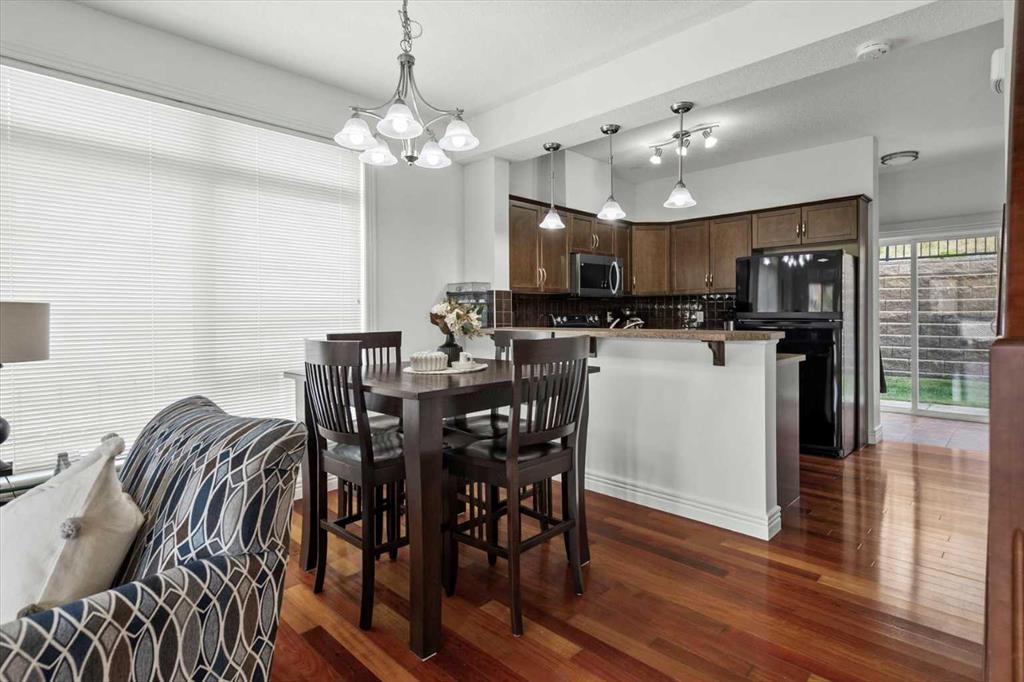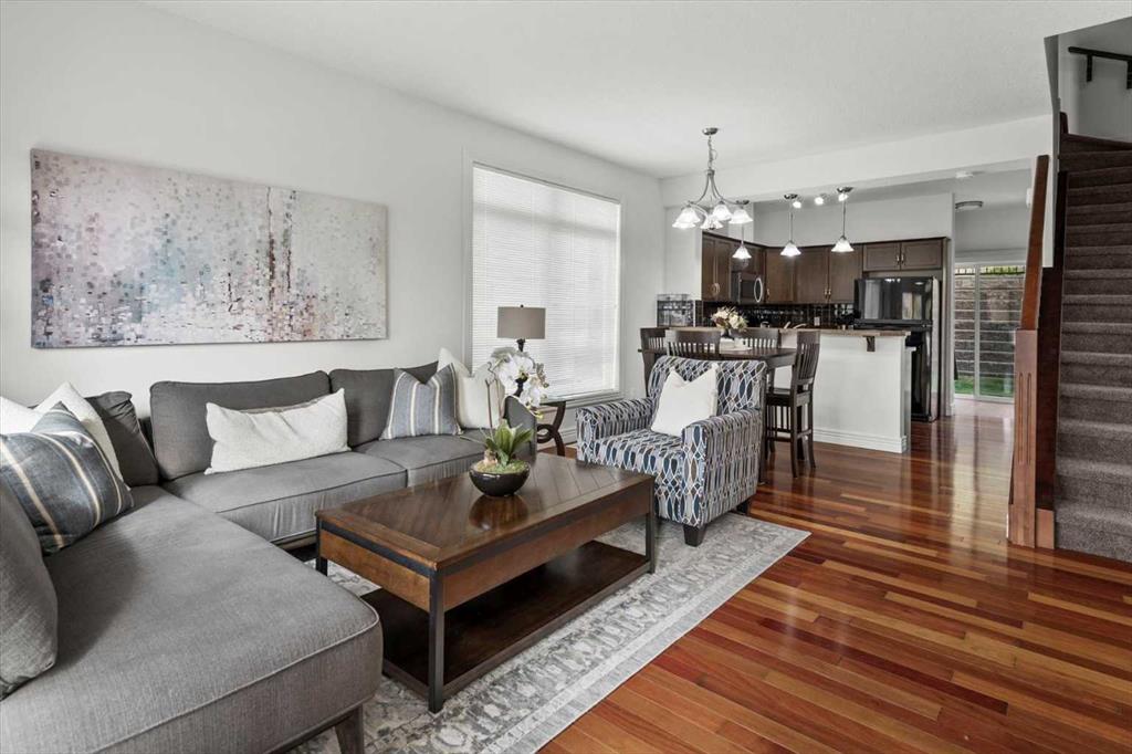 Welcome to this bright and beautifully maintained END UNIT townhome in Rocky Ridge, offering west-facing mountain views from both the front deck and upper level. With 9-foot ceilings and over 1450 sq. ft. of developed living space, this home blends comfort and style in one of Calgary’s most desirable communities.