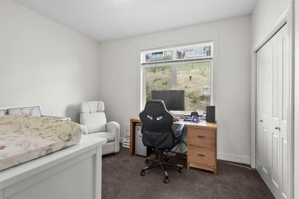 Upstairs, the primary bedroom offers stunning mountain views and a three-piece ensuite, along with a second bedroom and 4 piece bath. The laundry is conveniently located on this upper level