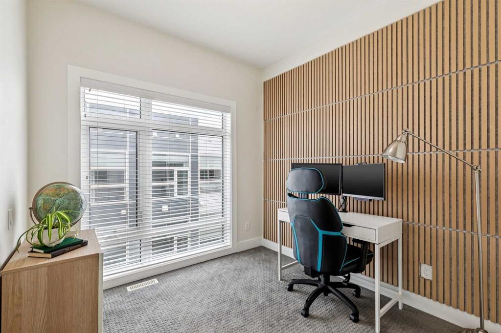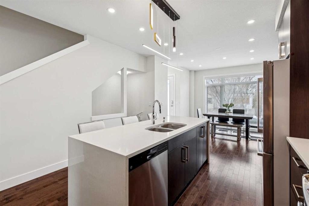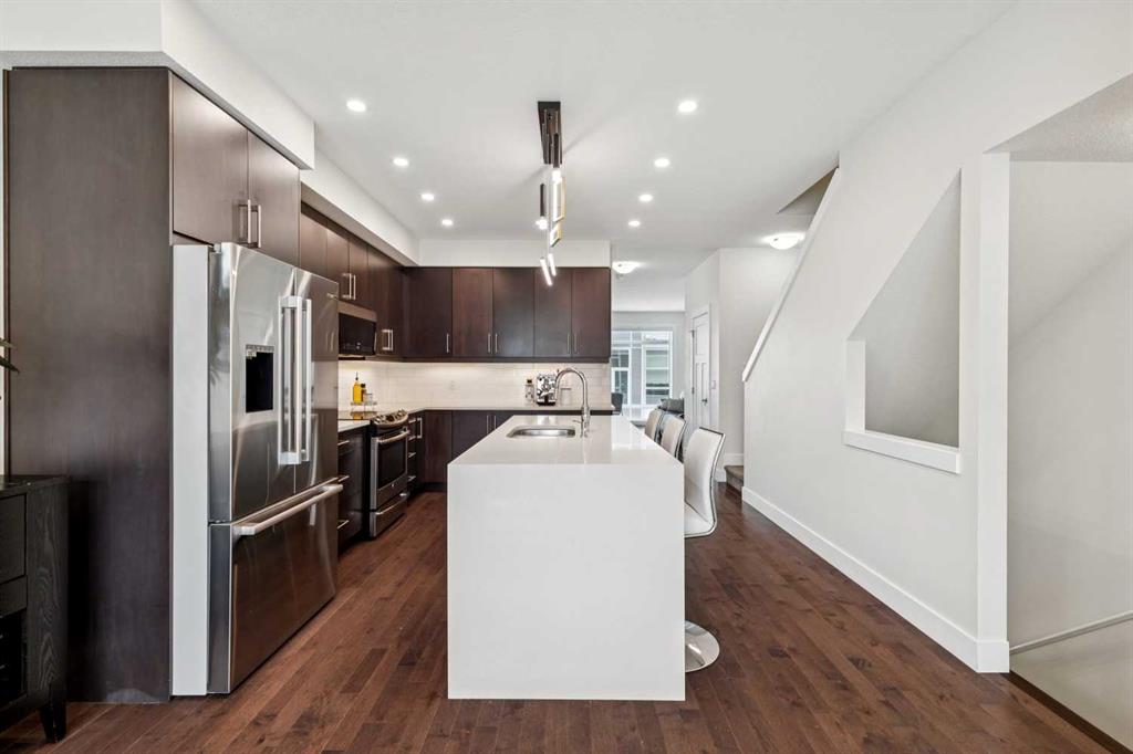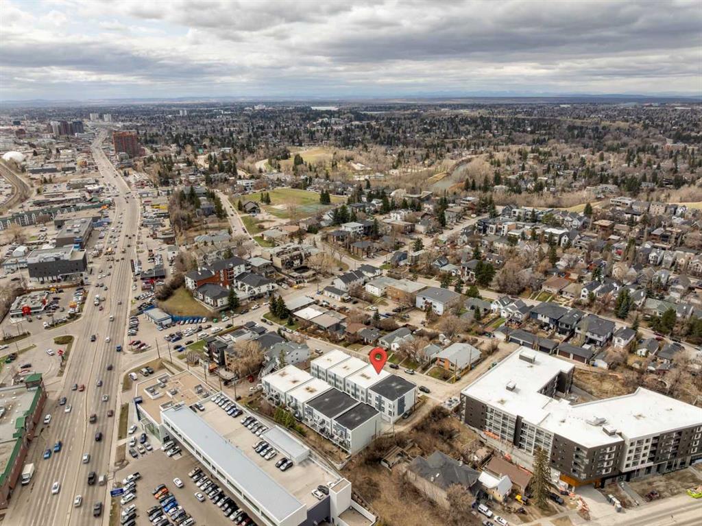 Welcome to this modern 3-bedroom townhome in the coveted inner-city community of Parkhill, the urban professional’s address. Striking curb appeal sets the tone, with 9-ft ceilings and large windows flooding the open-concept main floor with natural light. The contemporary kitchen features quartz countertops, tile backsplash, stainless steel appliance package, built-in pantry, upgraded lighting, and plenty of cabinet space, flowing into a bright dining area and modern living room anchored by a gas fireplace with custom built-ins. Upstairs, the spacious primary bedroom retreat offers a large walk-through closet, private balcony, and double vanity ensuite. Two additional bedrooms are thoughtfully separated by soundproofed walls, ideal as a dedicated home office, nursery, or guest room. Central air conditioning, high-efficiency furnace, and hardwood flooring deliver year-round comfort and quality throughout. Parking includes an oversized single garage with extra storage, plus a covered carport for a second vehicle, available guest parking, and street parking at the front. Exceptionally low condo fees with landscape maintenance included make this an affordable inner-city opportunity. Walk to Stanley Park, river pathways, and the 39 Ave LRT station. Minutes to trendy Mission’s shops and restaurants, Chinook Mall, the Stampede Grounds, Saddledome, and the downtown core. Work, live, and play from a central location built for the way you want to live.