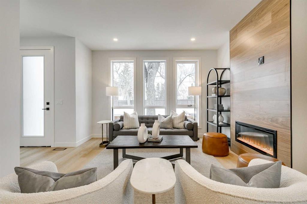 Welcome to 1-440 32 Avenue NW, a newly built 3 bedroom, 3.5 bathroom townhome spanning nearly 2,000 sq. ft. of total developed living space, including a fully finished basement, with 9 foot ceilings throughout situated in the desirable community of Highland Park in Northwest Calgary. The property was constructed by MountainPoint Homes Ltd., a professional builder with decades of experience working on high-end residences across Calgary. The home showcases superior craftsmanship, premium materials, and a design focused on livability and enduring value. The open-concept main floor offers a bright and inviting living area anchored by a sleek fireplace, complemented by a custom-built kitchen with full-height cabinetry, quartz countertops, and a modern appliance package. Thoughtful design and high-quality finishes elevate each detail from the luxury vinyl plank flooring to the precision millwork and thoughtful lighting selections.