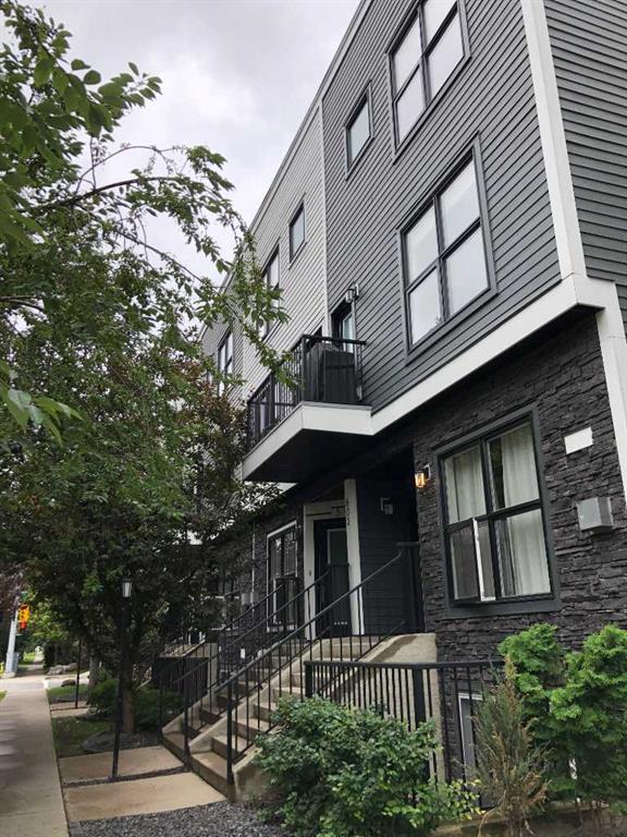 LOCATION LCATION LOCATION!!!! steps from 17 ave and TONS of restaraunts, bars, and shopping. This quaint end unit is on TWO LEVELS, and has a bright open kitchen/living area with lots of windows and natural light. Lower level has two large bedrooms, MASSIVE walk-in closet in the master, full bath plus utility and SEPERATE LAUNDRY room with included stacked washer/dryer. One oversized underground parking spot plus storage locker right in front of the parking stall. Needs some TLC but is a stellar investment close to all the action and the new arena!