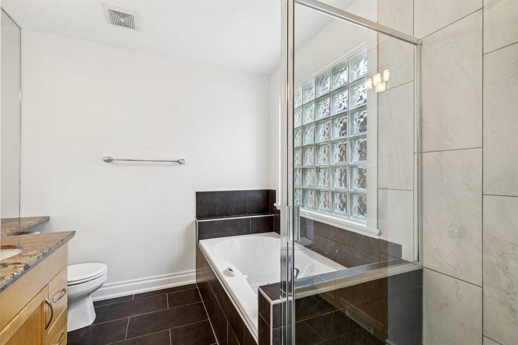 Upstairs, you’ll find two generous bedrooms, each with its own private ensuite — including a relaxing jetted tub in the primary bedroom. All bathrooms feature granite countertops, and the upper-floor laundry with linen storage adds everyday convenience (no going up and down to get laundry!).