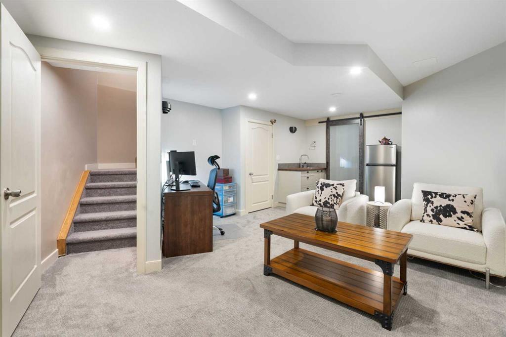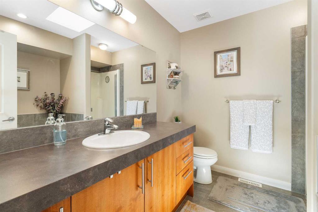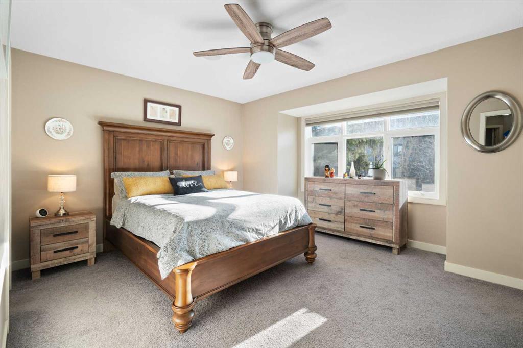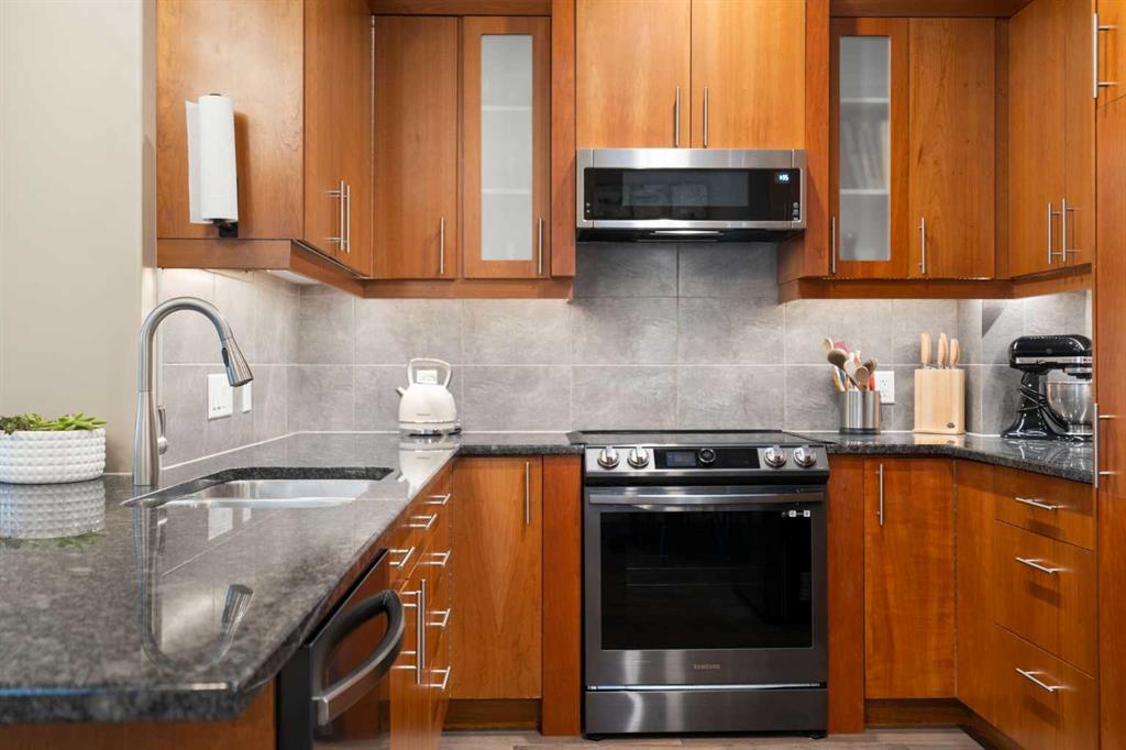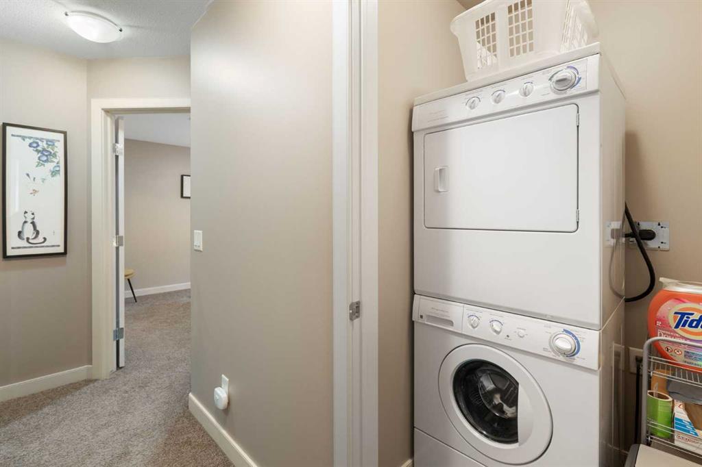 Located in Windsor Park, one of Calgary’s most convenient and desirable communities, this south-facing two-storey townhome is impeccably maintained and shows true pride of ownership throughout. The home has been carefully cared for and features a number of well-chosen upgrades. The bright main level features 9-foot ceilings, a sun-filled living room with east and south-facing windows, rich hardwood flooring, and a cozy inset fireplace. The open-concept layout flows effortlessly into the dining area and well-appointed kitchen—spotless, functional, and ideal for both everyday living and entertaining. New kitchen appliances were installed in 2024, including energy-efficient, smart Samsung appliances (fridge, dishwasher, and stove). The stove features an induction cooktop and a convection oven with a steam-cleaning function, while a Whirlpool microwave completes the newer appliance package. A convenient powder room adds to the functionality of the main level. Upstairs, the home offers two spacious bedrooms, each with its own 4-piece ensuite, all maintained in immaculate condition. The primary bedroom is a comfortable retreat, featuring a cozy electric fireplace and a well-appointed ensuite with a skylight, spacious vanity, large soaker tub, and separate shower. A convenient upper-level stacked washer and dryer adds everyday practicality. The recently completed basement extends the living space and includes a rec room with wet bar and refrigerator, ideal for relaxing or entertaining. A barn door provides stylish access to the utility and storage room. Additional features and upgrades include custom blinds installed in 2023, with thermal blinds in the primary bedroom and motorized blinds in the living room, central air conditioning (2023), R60 blown-in attic insulation (2024), and a smart thermostat—all contributing to the home’s comfort, efficiency, and excellent condition. A separate side entrance off the kitchen makes bringing in groceries easy and provides convenient access to the detached garage with assigned parking. Additional street parking in front of the home is easy and convenient. Outside, the pride of ownership continues with one of the most charming and well-kept yards on the street, featuring a covered front porch and an additional patio space, ideal for enjoying summer days. Ideally located with quick transit to downtown, easy access to Glenmore Trail, walking distance to Chinook Centre, and minutes from the trendy Britannia Plaza Shopping Centre, as well as parks, schools, and everyday amenities, this beautifully maintained home is perfect for professionals or families seeking comfort, quality, and an unbeatable location.