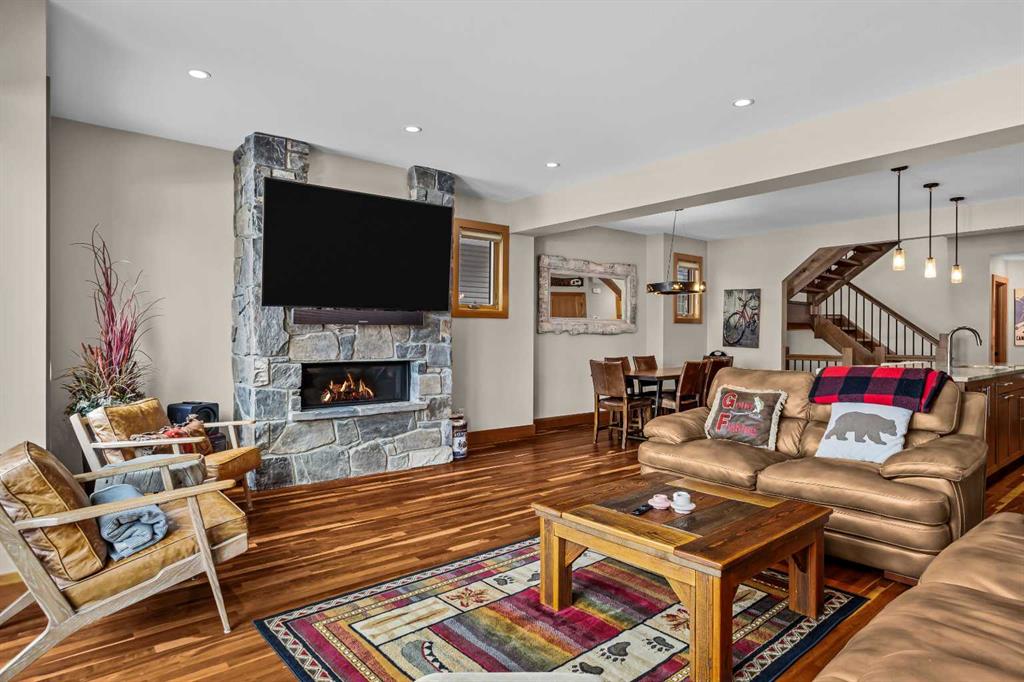 All just one block from the river pathway system and a short walk to shops and restaurants in South Canmore. Spacious, low-maintenance living designed for the mountain lifestyle—with all furniture included, except the TV above the living room fireplace, making this a truly move-in-ready opportunity.