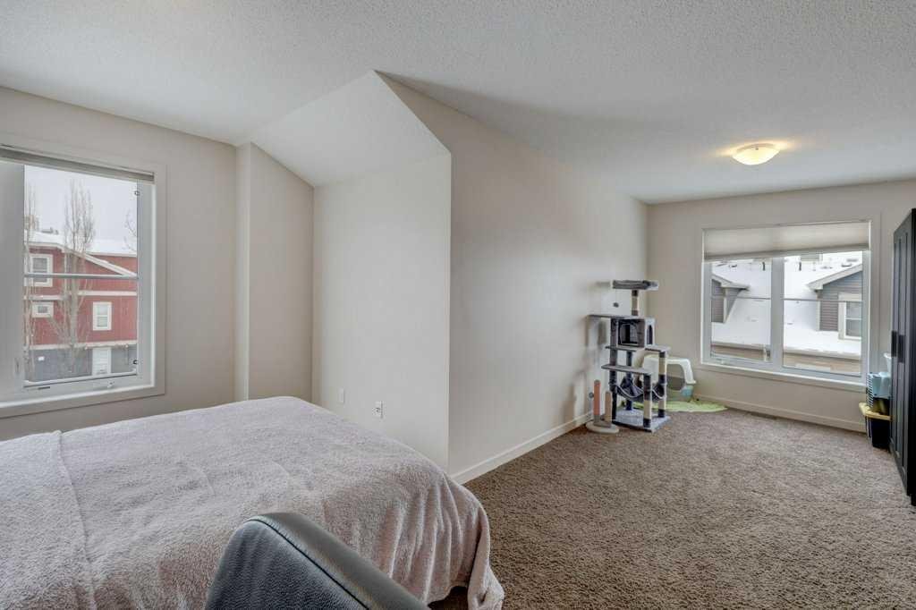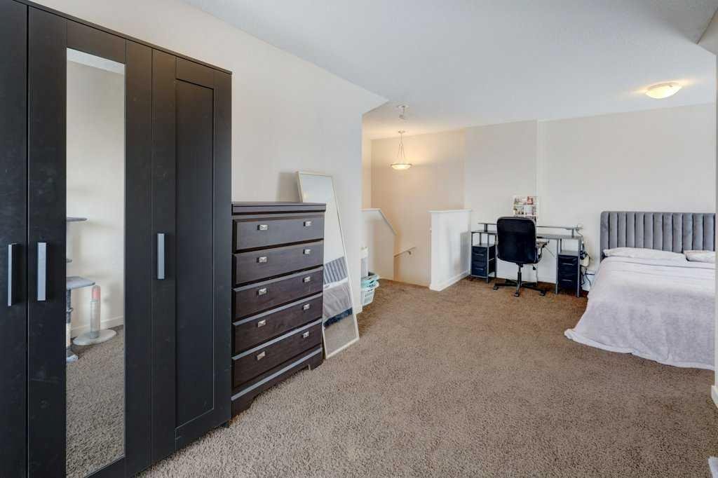 Gorgeous END unit townhome facing a green space and perfectly located in the heart of Auburn Bay! You are greeted with gleaming hardwood floors as you enter, through the living room & kitchen area with plenty of windows for loads of natural sunlight! Bright and Sunny! Functional kitchen with plenty of cabinet & counter space, mosaic tiled backsplash, raised breakfast bar & stainless-steel appliances. The second level features a master bedroom with walk in closet & ensuite bath, a second bedroom & another full bathroom. Up to the third level & you will find a huge, sunny loft/bonus room area that can be used as a rec room, bedroom, etc. The lower level is also fully finished with a rec room and another full bathroom as well as some storage space and laundry area. Front patio area is perfect for BBQing & entertaining! This home is steps to the school and a short trip to all the areas amenities, Deerfoot & Stoney Trails, transit, hospital, parks, pathways, theatre AND the lake!