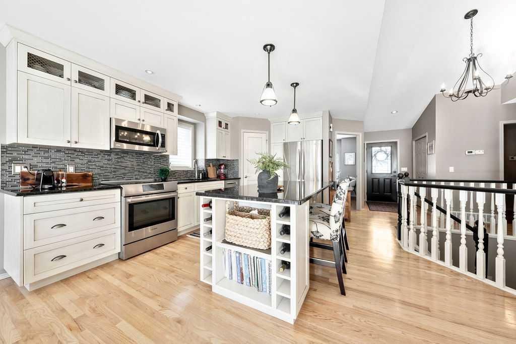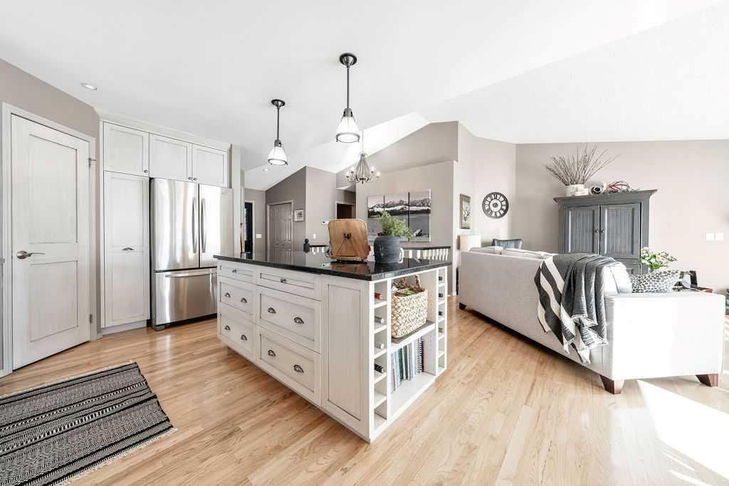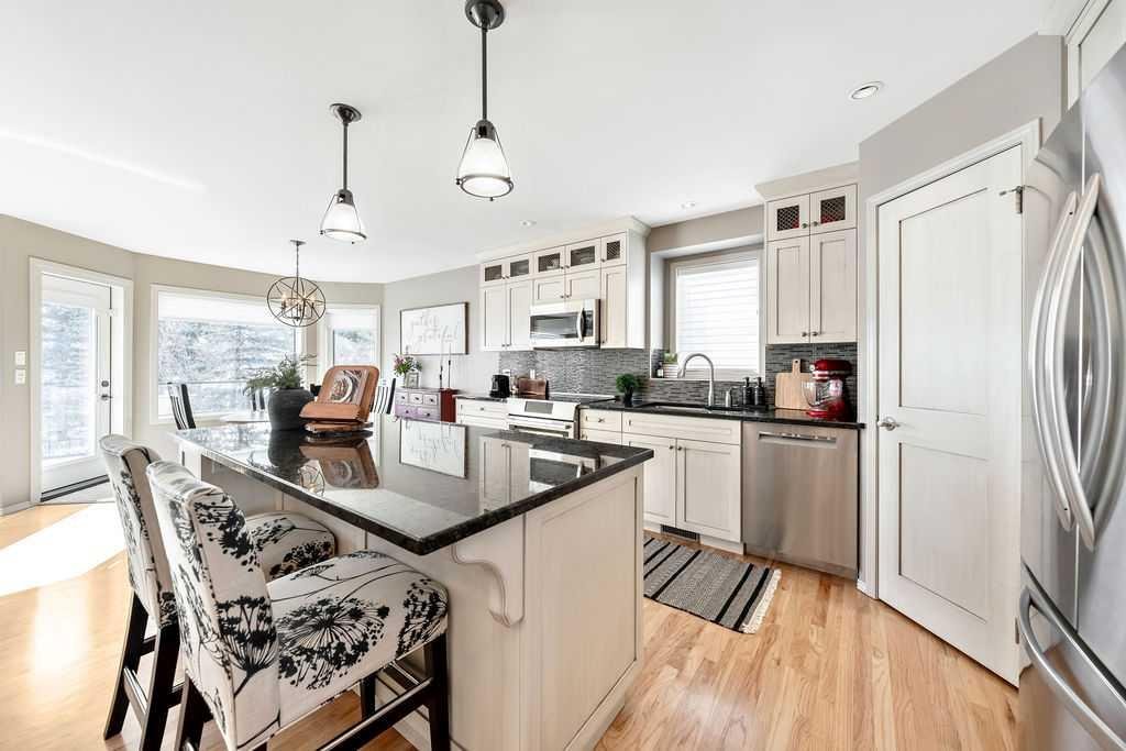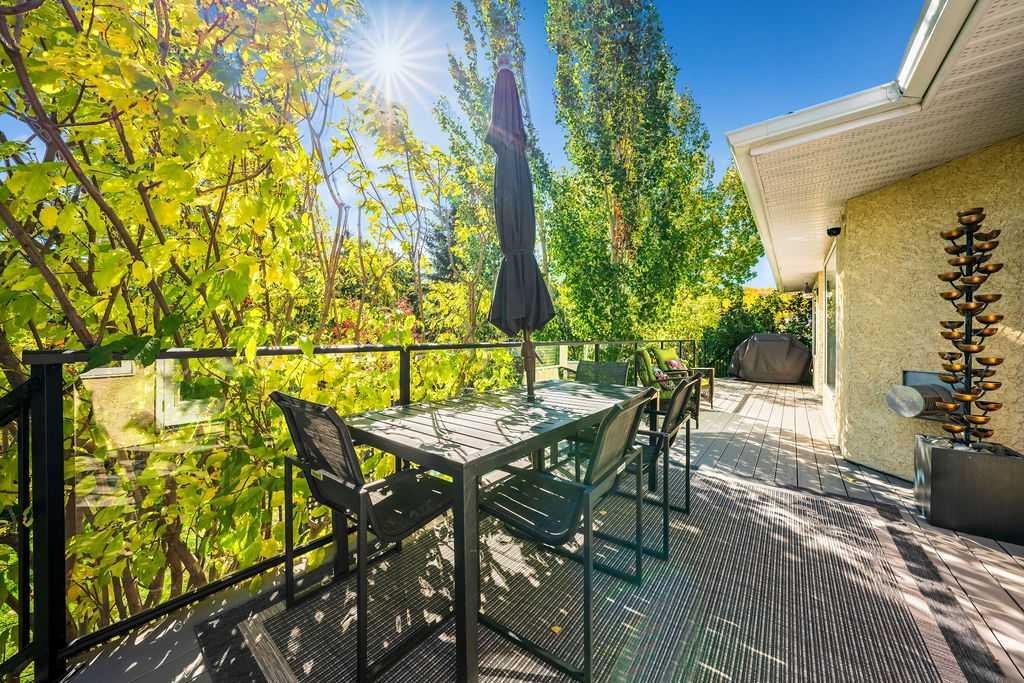 This executive bungalow is tucked away in a quiet cul-de-sac in the highly sought-after community of Bow Meadows in Cochrane — just steps to the beautiful Bow River and backing onto green space and a playground. With nearly 3,000 square feet of developed living space, homes like this rarely come to market! Proudly offered by the original owner, this home showcases warmth, care, and thoughtful updates throughout. The spacious front foyer welcomes you in, alongside a bright front office ideal for working from home. The renovated kitchen features maple cabinetry, granite countertops, and a large island perfect for entertaining and everyday living. Stainless steel appliances complete the space, including a new Bosch dishwasher (Dec 2025). The living room is centered around a cozy gas fireplace, while vaulted ceilings enhance the sense of light and openness across the main floor. The dining area flows seamlessly onto the expansive 40’ deck finished in Duradek with glass railings — an incredible outdoor space for relaxing or hosting. The generous primary bedroom also offers French door access to the deck, leading to your hot tub (2020) — the perfect retreat at the end of the day. The renovated primary ensuite includes a beautiful shower and a large soaker tub. A second bedroom completes the main level. The fully developed lower level offers exceptional flexibility with a spacious family room, flex area, two additional bedrooms, and a renovated bathroom. The large laundry room with a sink, provides plenty of space and functionality. Additional property features include: Hunter Douglas blinds, central air conditioning, newer triple-pane windows (2019), new eavestroughs and downspouts (2024) and underground sprinklers. Situated on an expansive, private lot surrounded by mature trees, this property backs onto a playground and picturesque walking paths that connect directly to the Bow River — truly an exceptional setting. This is a rare opportunity in Bow Meadows — book your showing today!