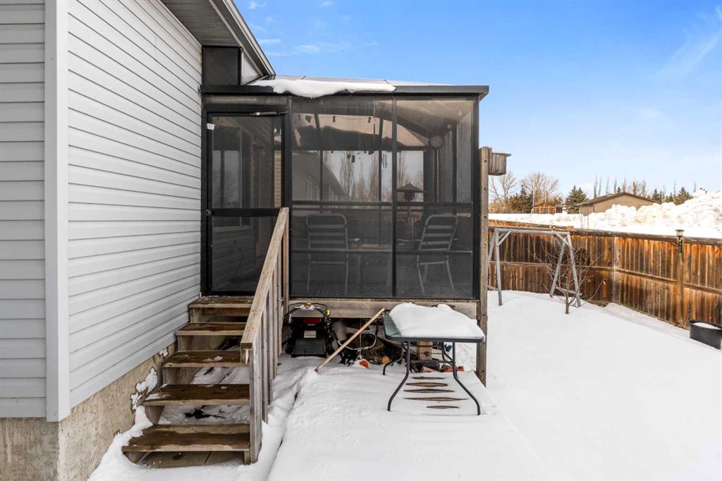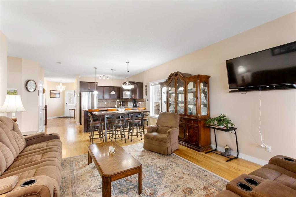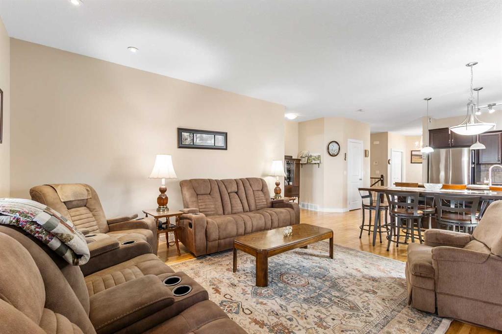 Welcome to this well-maintained duplex with an attached garage in the Town of Carstairs — offering the convenience of NO CONDO OR HOA FEES and a location close to schools and shopping. Built in 2009, this 4-bedroom, 3 full bathroom home features an OPEN-CONCEPT main living space designed for both everyday comfort and easy entertaining. The kitchen offers attractive cabinetry, a LARGE WALK IN PANTRY, and seamless flow into the dining and living areas. The primary suite is conveniently located on the main floor and includes a walk-through closet and a private 4-PIECE ENSUITE. A second bedroom, another full 4-piece bathroom + MAIN FLOOR LAUNDRY ROOM with direct access to the DOUBLE ATTACHED GARAGE complete the main level. Downstairs, the FULLY DEVELOPED LOWER LEVEL provides two additional spacious bedrooms, a 4-piece bathroom, generous storage, and a large family room — ideal for guests, teens, or additional living space. Off the main living area, a bright screened in SUNROOM extends your living space and leads out to the yard, where you’ll find a beautifully finished patio — perfect for enjoying warm evenings or quiet mornings. This is a solid, MOVE-IN READY HOME offering space, functionality, and value in a family-friendly community.