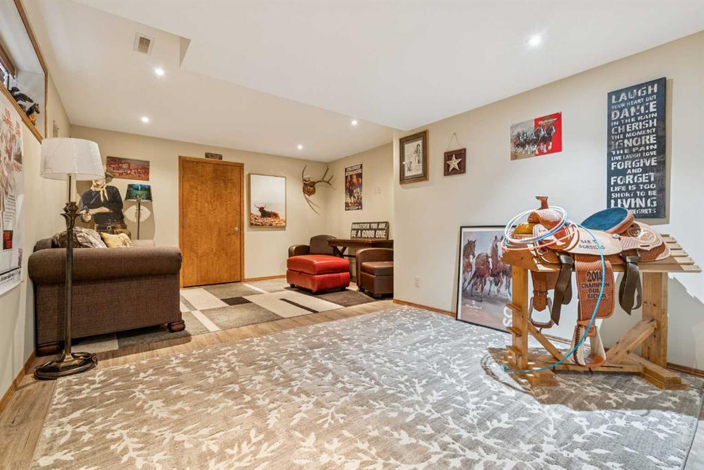 Welcome to Speargrass — a sought-after golf course community where quiet rural living meets modern comfort and a true sense of community. Tucked away on a private cul-de-sac, this beautifully maintained bungalow offers acreage-style living with peaceful green space, friendly neighbours, and exceptional amenities just minutes away.The open-concept main floor is designed for both everyday living and entertaining. A spacious kitchen flows seamlessly into the dining and living areas, while large windows fill the home with natural light and frame serene views of the surrounding landscape. The generous primary bedroom features a walk-in closet, spacious ensuite, and direct access to the back deck and yard — the perfect place to unwind. A second bedroom, full bathroom, and a versatile flex room ideal for a home office, den, or dining room complete the main level.The fully developed lower level offers a third bedroom, full bathroom, expansive family room, recreation room, and a large storage area — ideal for guests, hobbies, or growing families.Recent upgrades provide peace of mind, including a new hot water tank (2023), central air conditioning (2023), fridge (2023), dishwasher (2024), high-efficiency toilets (2025), replaced in-ground sprinkler heads (2025), and fresh paint on the main floor and stairway (Dec 2025). Furnace and roof inspections were completed in 2025.Step outside to a backyard that truly defines lifestyle property living — backing onto the 9th hole of the Speargrass Golf Club, with a toboggan hill just beyond, walking paths, and easy access to a playground and dog park. It’s a setting families dream of, offering year-round outdoor enjoyment in a safe, natural environment.Speargrass is known for its secure, close-knit atmosphere, controlled community access, a school bus stop steps from your door, and an active community board hosting holiday events and gatherings. Community amenities include a clubhouse within walking distance, affordable RV and vehicle storage ($50/month), excellent year-round road and water maintenance, and a weekly fresh-vegetable stand from the local Hutterite colony during the growing season. Fishing and camping spots nearby add to the rural charm. Located just 10 minutes from groceries, restaurants, and services, with convenient highway access to Calgary, Okotoks, Strathmore, and Vulcan, Speargrass delivers the perfect balance of peaceful privacy and proximity to the cityWhether you’re downsizing, starting fresh, or seeking a safe golf course lifestyle with rural luxury, this bungalow offers it all. Private living. Great people. Small-town charm. Welcome home to Speargrass — where community still matters.