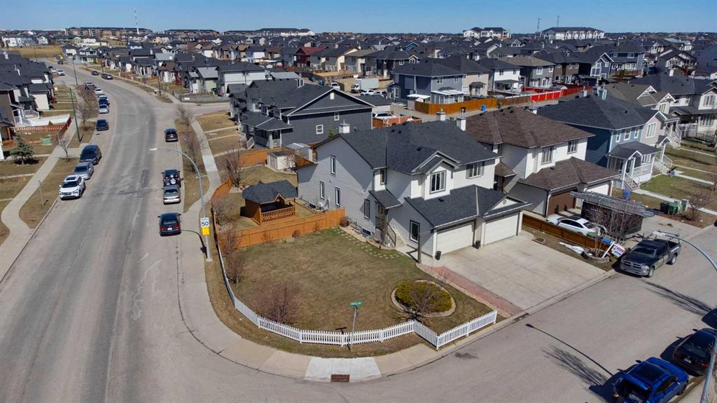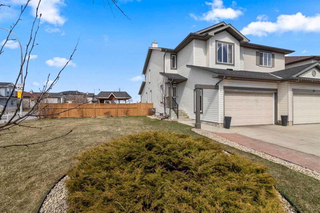 Welcome to this upgraded semi-detached home on an oversized corner lot. Step inside to a welcoming foyer and follow the hall past the powder room into the open-concept living space. The kitchen features stainless steel appliances, plenty of cabinet and counter space, and a walk-through pantry leading to the garage. The adjacent dining room flows into the living room at the back of the home, where a gas fireplace is perfect for cool winter nights. A skylight fills the kitchen, dining, and living areas with natural light. Sliding patio doors open to the oversized backyard, complete with a patio, green space, flower garden, trees, a gazebo, and a moveable shed. This space is a bonus for a family with children. The main floor laundry is also conveniently located on this level. Upstairs, the primary retreat offers a 4-piece ensuite, a walk-in closet with a window, and large windows that make for a bright and comfortable bedroom. Two additional bedrooms and a 4-piece bathroom complete the upper floor. The basement was developed in 2025 and includes a large family room with egress windows, a 2-piece bathroom, closet space, two storage areas, and a utility room. The single attached garage is oversized and large enough to accommodate a full-size truck. This corner lot offers space that is hard to find in a semi-detached property, and the location checks all the boxes, close to schools, parks, playgrounds, and walking paths. Come see this home with pride of ownership throughout.
