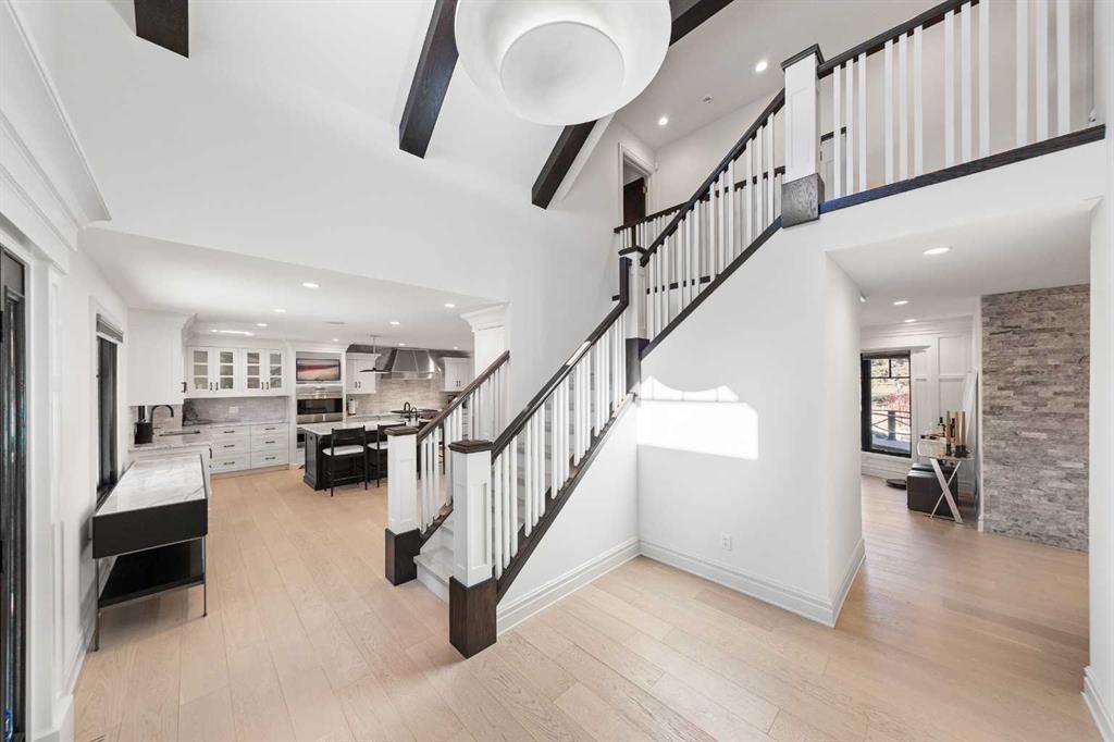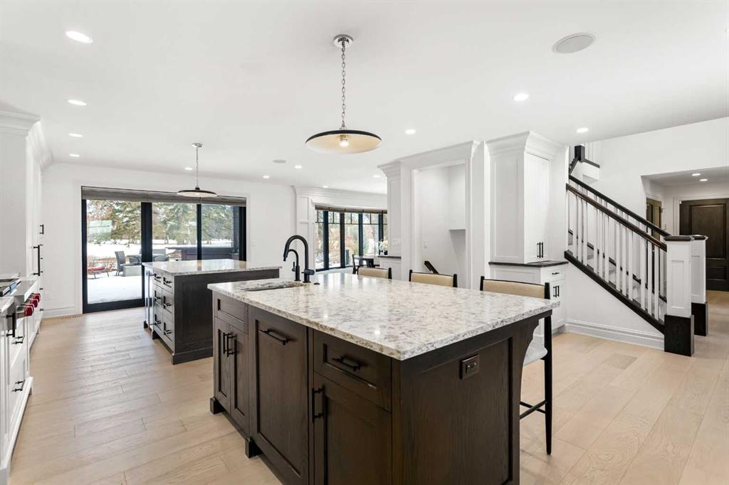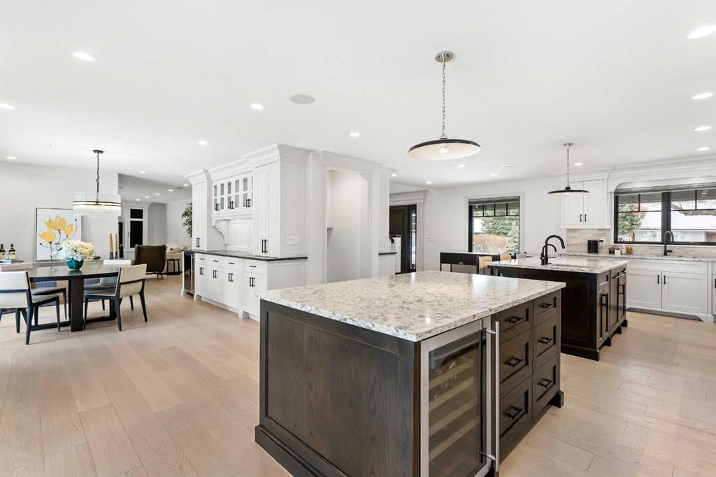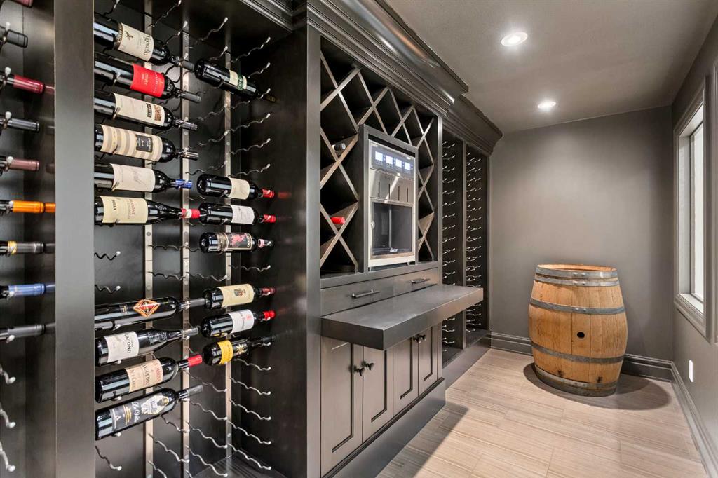 Rarely does a home on this quiet cul-de-sac come to market. Backing directly onto the 1st hole of Willow Park Golf & Country Club, this fully renovated estate home blends everyday comfort with genuine wow-factor. The chef’s kitchen anchors the main floor with dual granite islands, Sub-Zero and Wolf appliances, a hot water pot filler, prep sink, beverage center, wine fridge, and custom floor-to-ceiling cabinetry — flowing seamlessly to the backyard through patio doors. A butler’s pantry and second wine fridge serve the adjacent dining area. The living room features a built-in entertainment wall and gas fireplace with backyard and golf course views. Upstairs, the primary suite offers a spa level ensuite with dual vanities, soaker tub, and luxurious shower and a hot tub of the master patio overlooking the backyard/golf course. Three additional bedrooms each have their own character — one with a secret playroom, another with a Murphy bed, built-ins, and patio access. A well-appointed laundry room and 5-piece bathroom complete the upper level. The basement delivers a custom media wall, gas fireplace, full bar with commercial fridge, and a spectacular wine room with tasting station. A fifth bedroom with a walk-through closet and a private ensuite adds flexibility. The backyard is truly the crown jewel — mature landscaping, built-in outdoor kitchen, fire table, fire pit, pond with waterfalls, a bridge, and underground sprinklers throughout. Walking distance to shopping, schools, transit, and Willow Park Golf & Country Club.