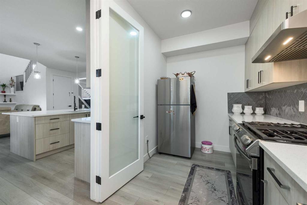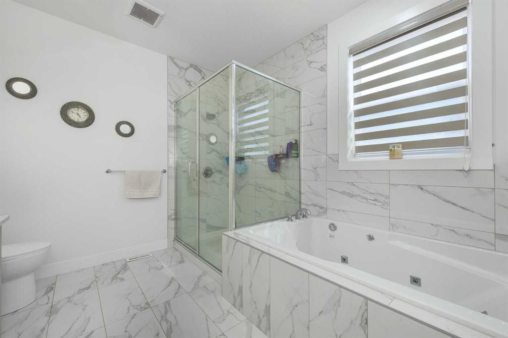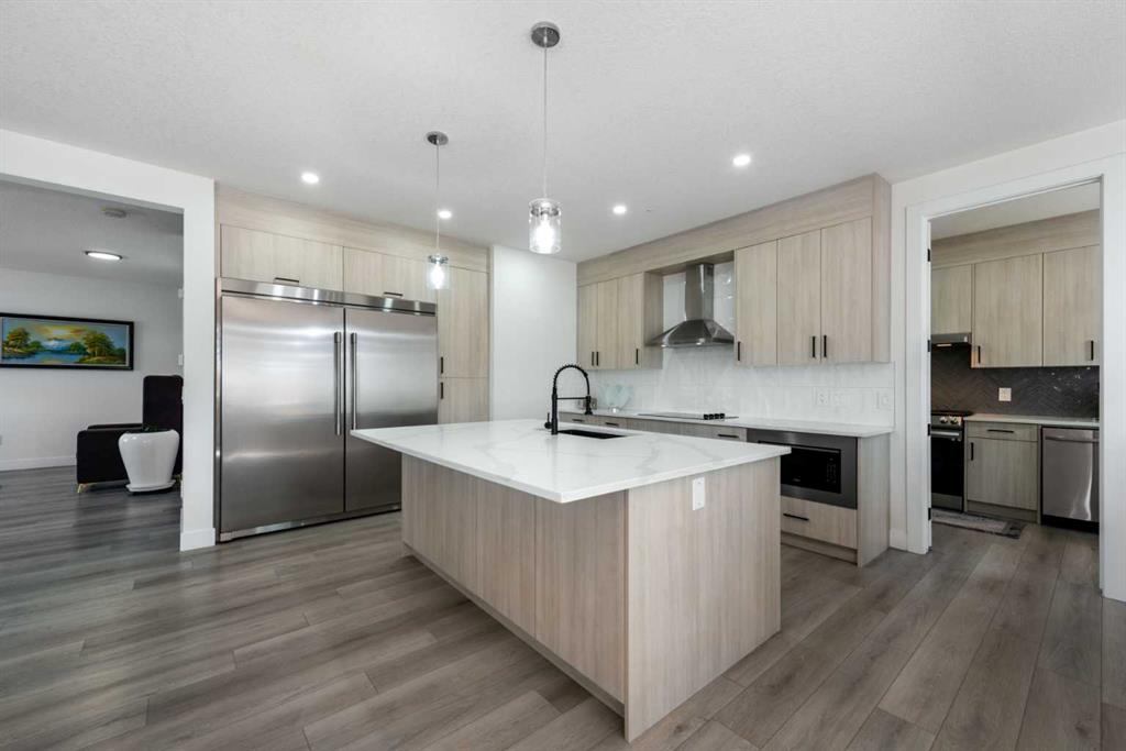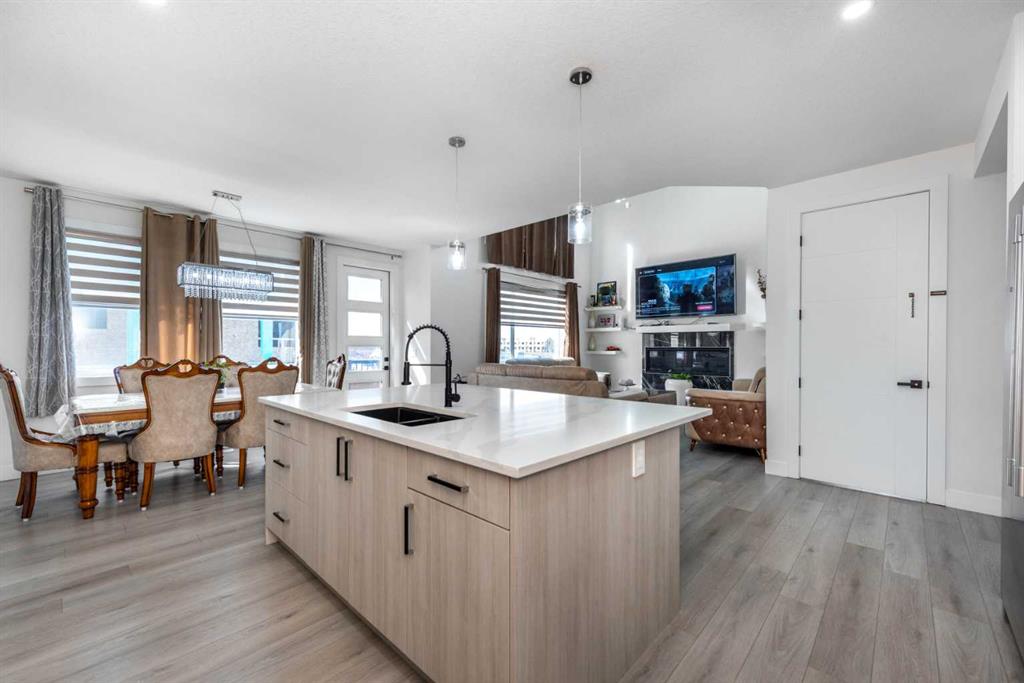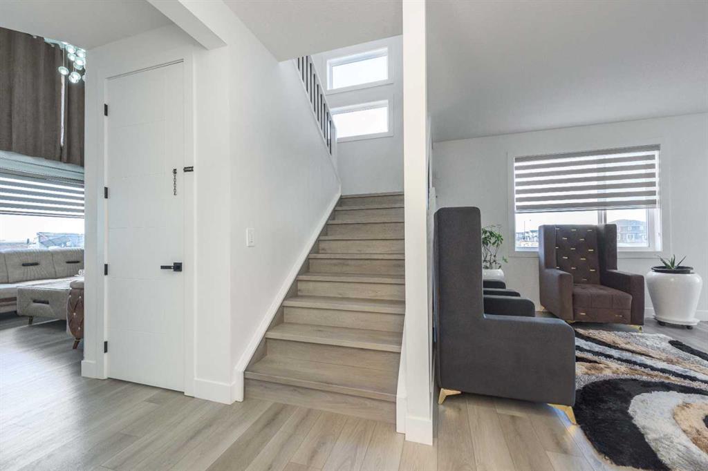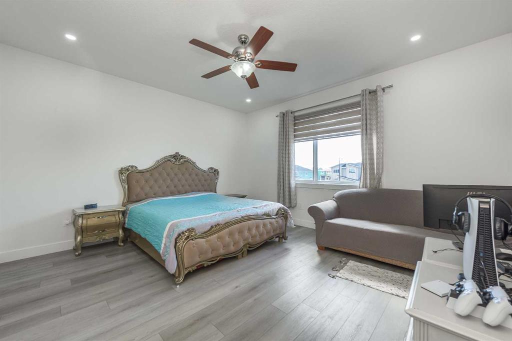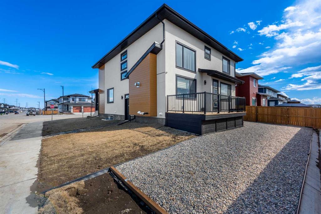TRIPLE ATTACHED GARAGE | CORNER LOT | 56 FT WIDE LOT | 2024 BUILT | 3150 SQFT ABOVE GRADE | 4500+ SQFT TOTAL LIVING SPACE | 8 BEDS | 6 FULL BATHS | MAIN FLOOR BED & BATH | SPICE KITCHEN | 2 LIVING ROOMS | OPEN TO BELOW | 2 MASTER BEDROOMS | ILLEGAL SUITE + SECOND BASEMENT SECTION | SEPARATE ENTRANCES | STUCCO EXTERIOR | 9FT CEILINGS | LVP FLOORING | LOW MAINTENANCE LANDSCAPING | 5 MINS TO CHESTERMERE LAKE | Welcome to this stunning 2024-built estate home in the sought-after community of Waterford, Chestermere, offering 3149 sqft above grade and more than 4500 sqft of total living space. Perfectly positioned on a premium corner lot, this home features a striking stucco exterior, triple attached garage, and a thoughtfully designed layout ideal for large families and investors alike. The main floor showcases 9ft ceilings, durable LVP flooring, a spacious open-to-below living room filled with natural light, a second living area for added flexibility, and a modern kitchen complemented by a fully equipped spice kitchen. A convenient main floor bedroom and full bathroom complete this level. Upstairs, you’ll find generously sized bedrooms including two luxurious primary suites, each with their own ensuite bathrooms, offering comfort and privacy for multi-generational living. The basement is uniquely designed with two separate sections, both with their own entrances—one side featuring a 2-bedroom illegal suite, and the other offering a 1-bedroom setup with its own ensuite bath—providing excellent income potential or space for extended family. The exterior is fully landscaped with a low-maintenance design, perfect for easy upkeep year-round. Located just 5 minutes from Chestermere Lake, with quick access to amenities, schools, and major routes, this home is a rare opportunity to own a high-end, income-generating property in a prime location.