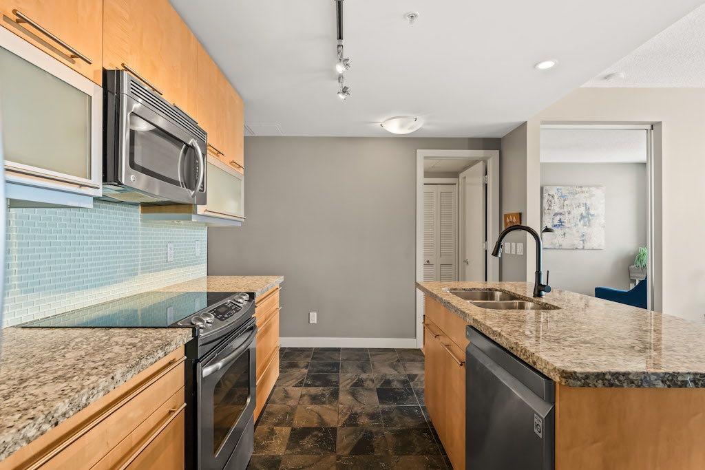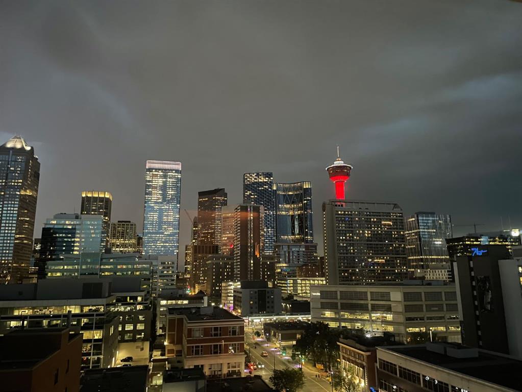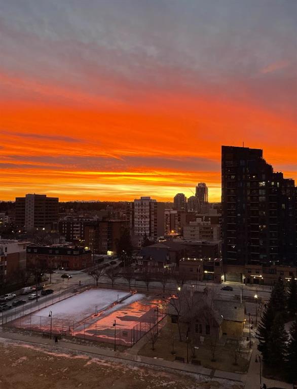 Welcome to Unit #1003 at Union Square—a NW corner 2-bed, 2-bath condo in the heart of the Beltline designed for elevated inner-city living. With floor-to-ceiling windows, 9 foot ceilings, & sweeping 270 degree views of the Downtown skyline, Haultain Park, & the Rocky Mountains, this home is filled with natural light & an incredible sense of space. Start your mornings with coffee overlooking the park & wind down relaxing on your private covered west-facing patio, taking in mountain views & unforgettable evening sunsets (complete with gas hookup for easy BBQ nights)—the kind of space that makes staying in just as appealing as going out. Inside, the layout is thoughtfully designed for modern living, with bedrooms positioned on opposite sides of the floor plan for added privacy, a dedicated work area just off the living room for an ideal work-from-home setup, & a second bedroom perfect for hosting guests. The interior features clean, contemporary finishes including granite countertops, stainless steel appliances, glass backsplash, & newer durable laminate flooring. The primary bedroom is a spacious retreat with a walk-in closet & a well-appointed ensuite featuring a walk-in glass shower, while evenings offer views of the illuminated Calgary Tower, adding an iconic city backdrop to your bedtime routines. Central A/C keeps things comfortable all summer long, & everyday convenience is elevated with in-suite laundry, an underground heated parking stall, & a dedicated storage locker. Step outside & you’re exactly where you want to be—Downtown & some of Calgary’s best spots are all within walking distance, including First Street Market, The Sunday Shop, Ten Foot Henry & Proof Cocktail Lounge. The C-Train, Stampede Park, cafés, fitness studios, & vibrant nightlife all just steps from your door. Walk to work. Walk to dinner. Walk to everything. This is Beltline living, done right.