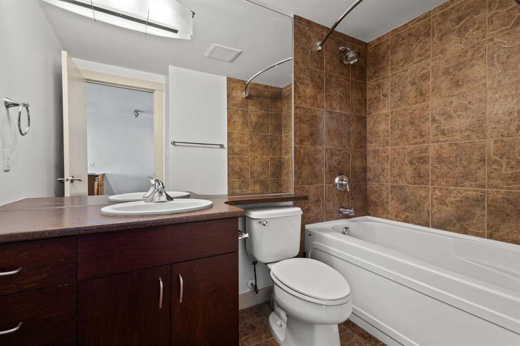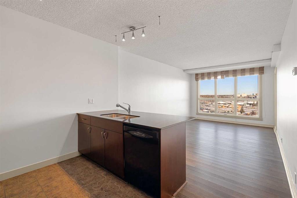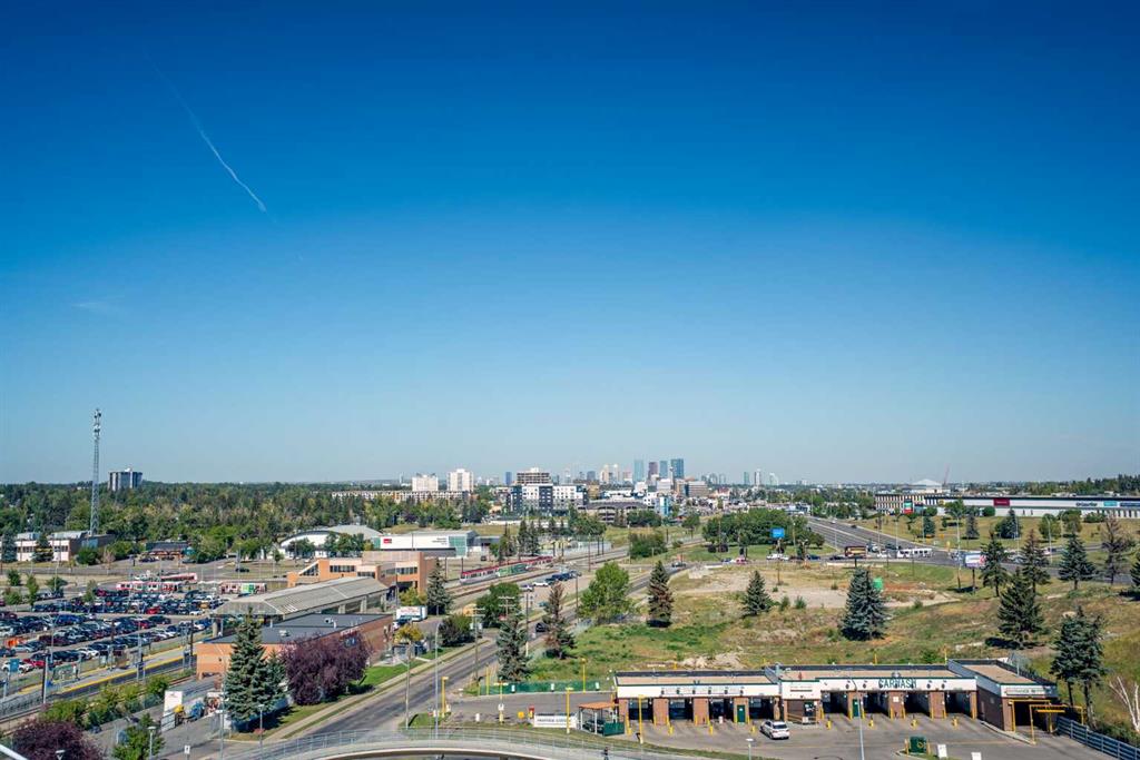 Designed for effortless daily living, this north-facing 10th-floor condo combines skyline views with immediate access to transit and on-site amenities. Featuring 9-foot ceilings, an open-concept layout, freshly painted interiors, and expansive windows, this home feels bright, modern, and move-in ready. The kitchen is designed for both everyday living and entertaining with maple cabinetry, sleek upper storage, black appliances, a brand-new refrigerator (2025), modern fixtures, and a generous breakfast bar anchoring the living space. The bright living room flows seamlessly to a cozy balcony where you can enjoy breathtaking downtown and mountain vistas while grilling on the natural gas hookup, perfect for summer barbecues and year-round enjoyment. The primary bedroom offers comfortable accommodation while the versatile den provides the perfect space for a home office or guest room, plus the convenience of in-suite laundry with a new stacked washer and dryer (2024) simplifies everyday chores. This pet-friendly, professionally managed building offers 24-hour security, heated underground parking, three high-speed elevators, a party room, a modern lobby with updated furniture, a sunroom on the 17th floor, and a serene rooftop garden where panoramic downtown views create the perfect backdrop for relaxation. One of the building’s standout features is direct heated underground access to Save-On-Foods and the Shops at Heritage, along with a pedestrian bridge providing a short walk to the Heritage LRT Station for quick downtown access. For outdoor enthusiasts, nearby bike trails, Glenmore Reservoir, Fish Creek Park, and numerous green spaces offer endless recreation options. Whether you’re a first-time buyer, investor, or young professional seeking low-maintenance urban living, this exceptional home delivers comfort, convenience, and style in one of Calgary’s most connected neighborhoods. Don’t miss this opportunity to make this your new home!