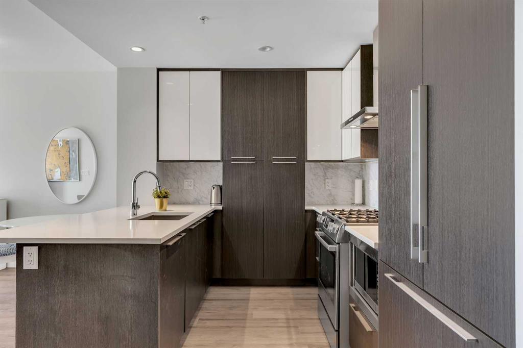 Welcome to 1004, 930 16 Avenue SW, situated in Calgary’s vibrant entertainment district, steps from top restaurants, shops, and nightlife. Access your unit directly via one of three high-speed elevators, and be greeted by a bright, open-concept design with floor-to-ceiling windows that showcase stunning city views and brand new vinyl plank flooring throughout.. The gourmet kitchen is a true highlight, featuring quartz countertops, full-height cabinets, and a spacious breakfast bar island—perfect for entertaining. The adjacent dining and living areas are flooded with natural light and offer direct access to a large balcony, ideal for morning coffee or evening gatherings against the breathtaking backdrop. The spacious primary bedroom also boasts fantastic views creating a serene retreat. The stylish bathroom includes a deep soaker tub, and additional features like in-suite laundry, underground parking, and a separate storage locker ensure convenience. The building offers a wealth of amenities, including a 10,000 sq. ft. “Club Royal” with an elevated garden terrace, BBQs, steam room, sauna, gym, squash court, owner’s lounge, chef’s kitchen, and private dining area. An on-site concierge (24/7) and glamorous lobby add to the luxury living experience. Plus, with Canadian Tire and Urban Fare Market on-site, everything you need is at your doorstep. Nearby attractions include grocery stores, Elbow River pathways, transit, and Memorial Park.
