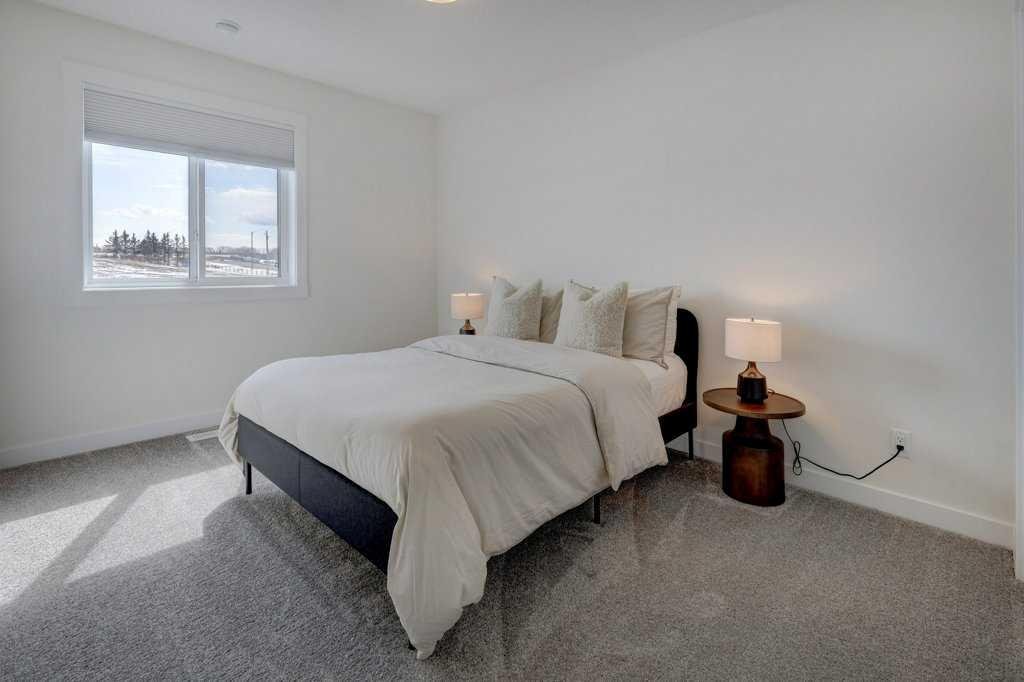 Upstairs, a centrally located bonus room welcomes you from the stairs and creates separation between spaces, adding flexibility for family life. The primary suite offers a calm retreat with a walk in closet and a well finished ensuite featuring dual sinks, quartz counters, tile flooring, and an oversized tiled shower. Step out directly to your 5×15 balcony. Two additional bedrooms, a full bathroom, and an upper level laundry room complete the second floor.