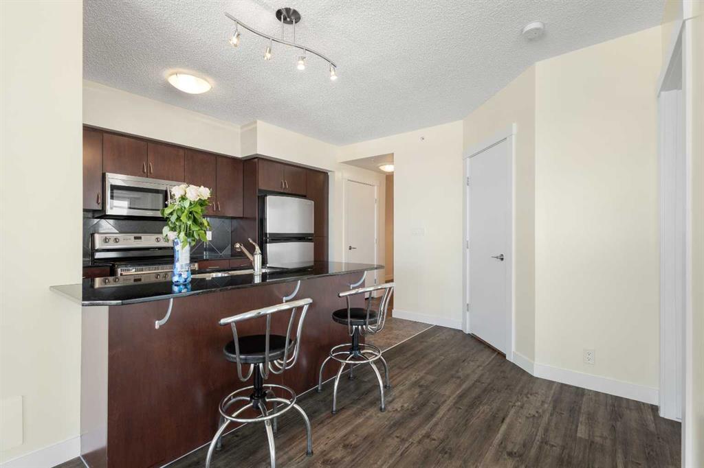 Building amenities include a heated underground parkade for owners and visitors, secure bike storage, a bright common sunroom, and a rooftop patio with panoramic views. A covered pedestrian bridge connects directly to the C-Train, providing quick access to downtown, the University of Calgary, SAIT, and local amenities.