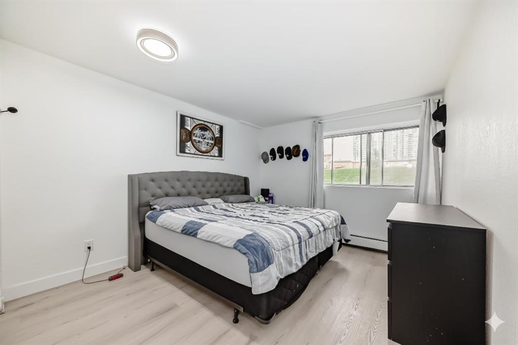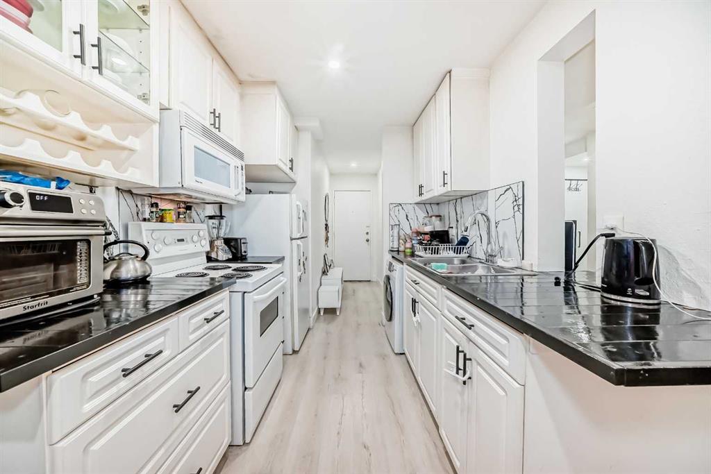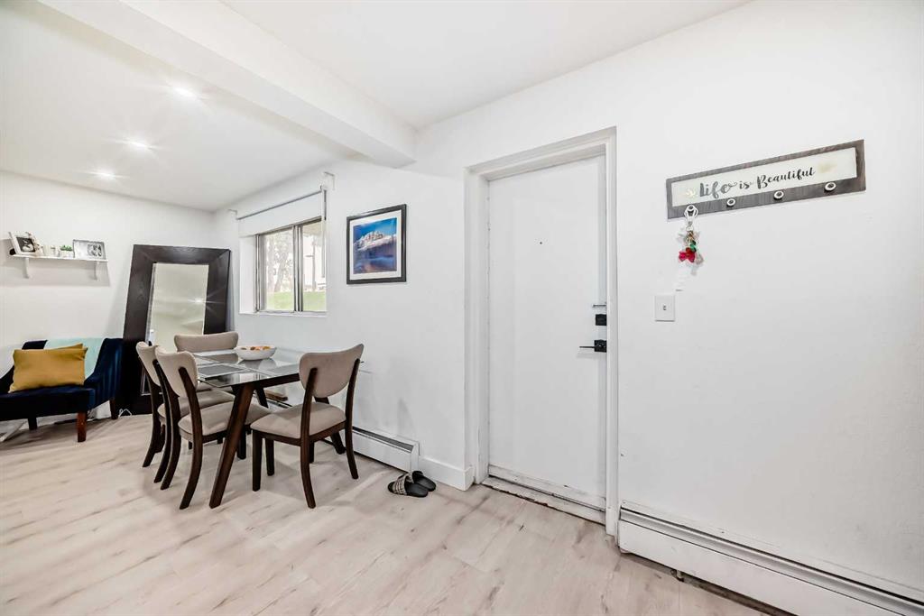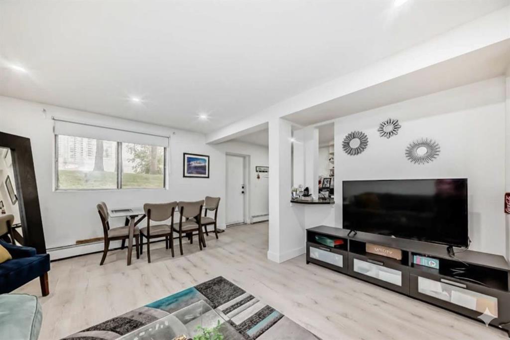 This versatile one-bedroom plus den condo offers comfort, functionality, and unbeatable convenience. The bright dining area flows seamlessly into a galley-style kitchen—perfect for entertaining—while a large window fills the living room with natural light. The private walk-up entrance adds a rare touch of independence. The generous bedroom is complemented by a flexible den, ideal for a home office, study, or creative space. A full 4-piece bath and ample storage complete the home. Located directly across from Westbrook Mall and the LRT Station, this property provides effortless access to shops, dining, and transit. Enjoy nearby 17th Ave’s vibrant restaurants and boutiques, or reach downtown and Mount Royal University in just 10 minutes.