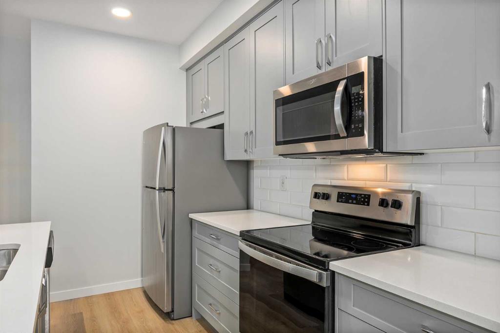 Welcome to this beautifully designed 2-bedroom condo offering modern comfort and stylish upgrades. Inside, the open-concept layout features high-end 7 mm luxury vinyl plank flooring throughout, providing both durability and waterproof performance. The contemporary kitchen is thoughtfully designed with quartz countertops, stainless steel appliances, and a central island with breakfast bar seating – perfect for everyday living and entertaining.