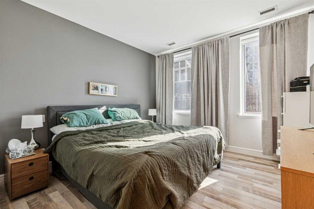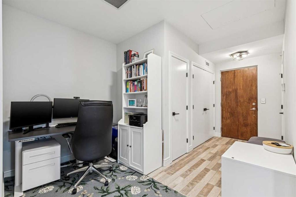 Welcome to The Montana, one of Calgary’s most sought-after addresses in the heart of the vibrant Beltline. This elegant building is renowned for its timeless appeal and prime inner-city location, just steps away from 17th Ave, grocery, cafe’s, restaurants and shopping. Step into this rare main floor corner unit with soaring extra-high ceilings and floor to ceiling windows that fill the living space with natural light. The layout features 2 bedrooms, 2 bathrooms, and a den, offering the a flex space for a home office. Custom California closets in both bedroom closets as well as entryway closet and pantry add attractive functional storage.
