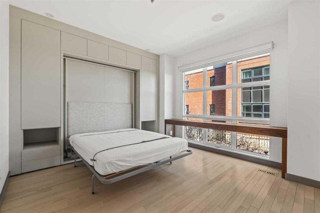 The entry level welcomes you with a spacious foyer, a versatile bedroom or home office complete with a custom built-in desk and Italian Murphy bed, and a full bathroom – perfect for guests or day-to-day flexibility. This level also features a bright, open-concept layout centred around a large bar and entertainment space, with a comfortable living area that opens onto a sunny balcony, creating an ideal setting for hosting or relaxing at the end of the day.