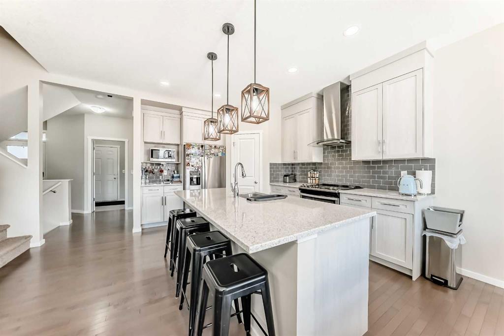 Welcome to this charming home nestled in the serene neighborhood of Belmont, SW Calgary. Boasting convenience and tranquility, this property offers easy access to key routes connecting you to the heart of Calgary and beyond. Step inside to discover a beautiful front foyer welcoming you into an inviting open main floor plan. The modern kitchen is equipped with chimney hoodfan, stainless steel appliances, a convenient kitchen island, and stylish cabinetry. The adjacent living room exudes warmth with its electric fireplace, creating a cozy ambiance for relaxing evenings. The dining room seamlessly transitions to the backyard through a patio door, the concrete pad is ideal for enjoying outdoor gatherings or for added parking spaces and lots of room for your RV or truck. A 2pc bathroom, foyer, and walk-in pantry complete the main floor layout, offering practicality and ease of living.Upstairs, a spacious bonus room/can be coverted as a 4th bedroom and laundry room provide added convenience for everyday living. The primary bedroom features an ensuite and walk-in closet, offering a private retreat. Two additional bedrooms and a family washroom complete the upper floor, providing ample space for family and guests. The unfinished basement presents endless possibilities for customization and expansion according to your needs and preferences.Situated in Belmont, with boundaries defined by 194th Avenue, Sheriff King Street & 210th Avenue, this property offers direct access to major thoroughfares such as Macleod Trail and Stoney Trail, ensuring effortless commuting and quick access to essential amenities.Don’t miss out on the opportunity to make this well-maintained property your new home, where comfort, convenience, and tranquility converge seamlessly. Please call your favorite Realtor to book a Showing.