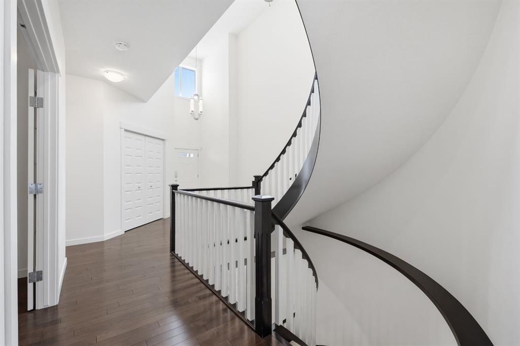 Welcome to this exceptional fully developed walkout home in the sought after community of Evanston, offering just over 3,800sqft of total living space with 5 bedrooms and 3.5 bathrooms thoughtfully designed for both everyday comfort and elevated entertaining. From the moment you enter, you’re welcomed by soaring open-to-above ceilings and a striking curved staircase creating a strong first impression that carries throughout the home. The main level features rich hardwood flooring, 9’ ceilings, and a seamless open concept design anchored by a sophisticated living room with a gas fireplace. The kitchen is both functional and beautifully appointed, showcasing quartz countertops, an oversized central island, stainless steel appliances, GAS COOKTOP, a walk-in pantry, and a modern backsplash perfectly suited for hosting and daily living. Just off the kitchen is a large den, perfect for a home office or additional living space. Upstairs, the primary retreat offers a private escape, complete with a spacious walk-in closet a spa-inspired ensuite featuring dual vanities, a glass rainfall shower bringing a true luxury wellness experience into your home. Additional upper bedrooms, separated by the bonus room are generously sized and ideal for family living. The PROFESSIONALLY DEVELOPED walkout basement completed with over $100,000 in upgrades extends the home’s living space with a large recreation area, wet bar, additional bedroom, and full bathroom with high end commercial STEAM SHOWER creating the perfect setting for entertaining, guests, or multi-generational living. Step outside to a thoughtfully designed, low maintenance backyard featuring durable composite decking, a pergola, and connecting stairs between the upper and lower levels creating multiple outdoor living spaces that seamlessly blend indoor and outdoor living. A built-in irrigation system adds convenience and ease of maintenance. As well as added gas hookups on both upper and lower levels. Notable upgrades include CENTRAL AC, central vacuum, Cat5 wiring throughout, and a double attached garage equipped with a 50-amp / 250-volt EV fast charger. The home is further enhanced by a brand NEW ROOF (2025), providing both comfort and long-term peace of mind. Located near parks, schools, and amenities, this is a rare opportunity to own a turn-key walkout home that combines thoughtful upgrades, timeless design, and modern convenience in one of Northwest Calgary’s most desirable family communities. (Listing has virtually staged photos)