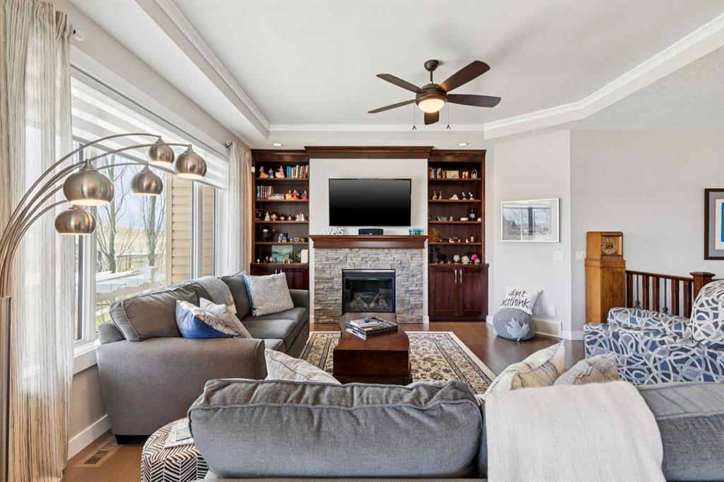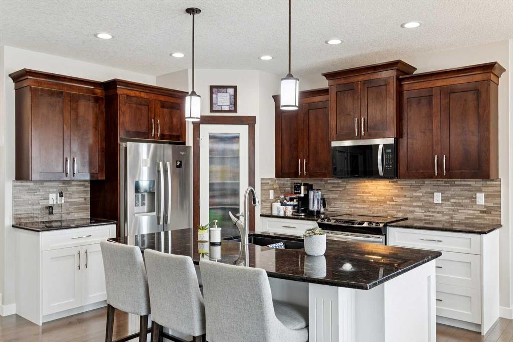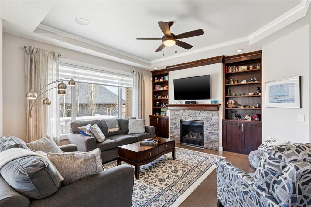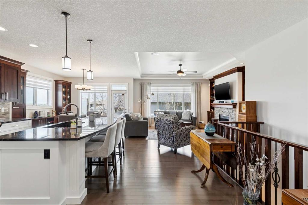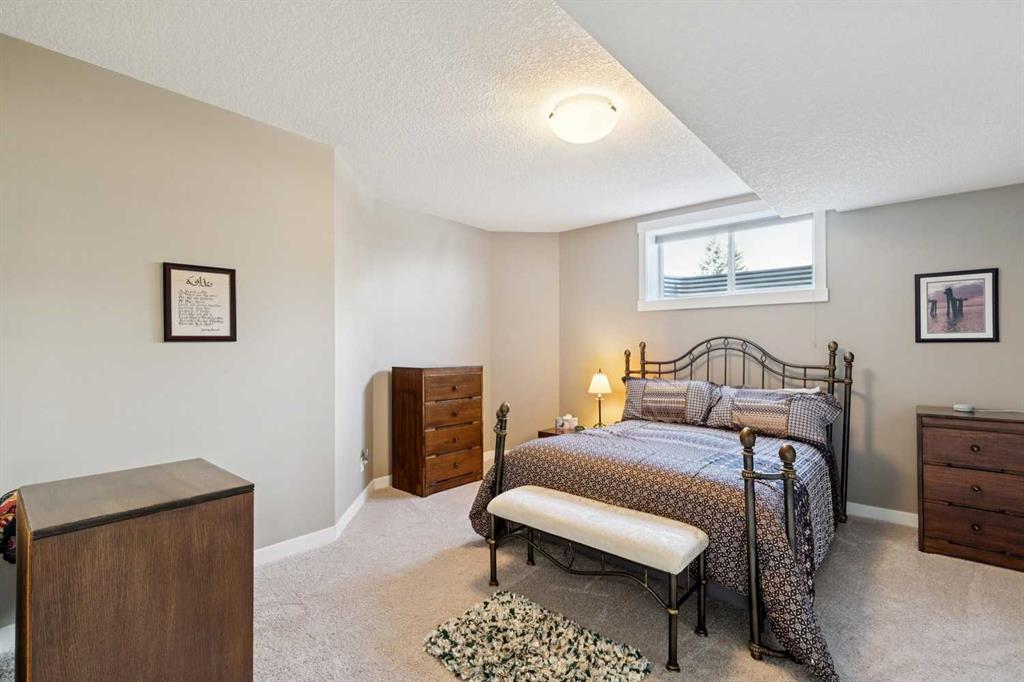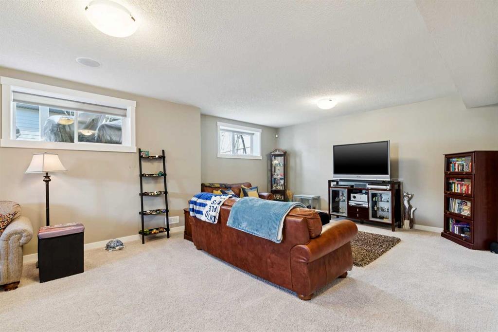 This immaculate high-end bungalow offers a well-planned layout, quality finishes, and a long list of upgrades throughout. Features include hardwood floors, high ceilings, extensive built-ins, and large triple-pane low-E windows that bring in excellent natural light. The open-concept main living area includes a fireplace with a built-in maple wall unit, while the kitchen features granite countertops, an undermount sink, maple cabinetry, and a bright eating nook with deck access. A front flex room or home office enjoys a mountain view, and the main floor also includes laundry with built-in cabinetry. The spacious primary bedroom offers a large walk-in closet and a well-appointed 5-piece ensuite. The fully finished basement features 9’ ceilings, large windows, a generous family room with space for a pool table, two additional bedrooms, a craft room, and a full bathroom. Energy-efficient details include a dual-zone high-efficiency furnace, low-flow fixtures, and R-50 attic insulation. Set on a large corner lot with a 24’ deep garage suitable for a truck, this is a clean, comfortable, and thoughtfully upgraded home.
