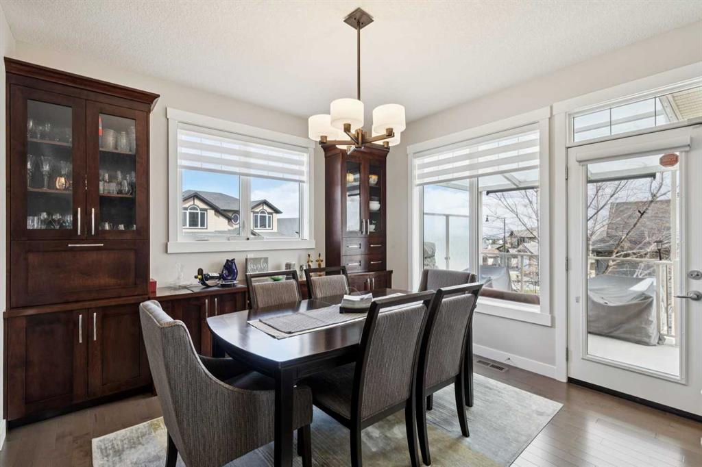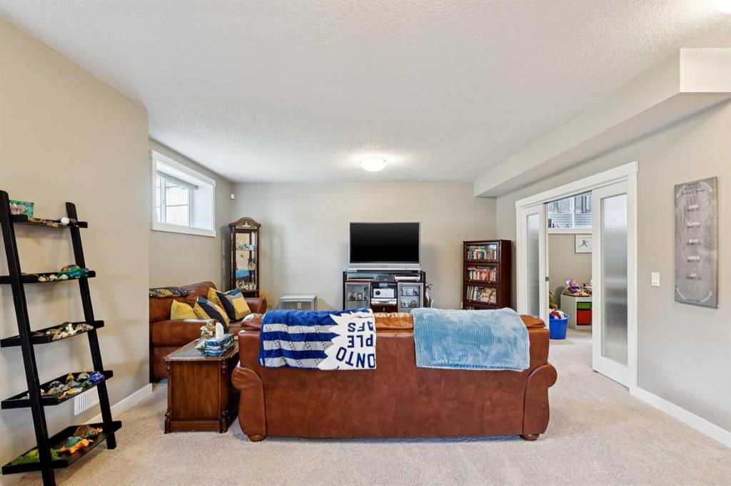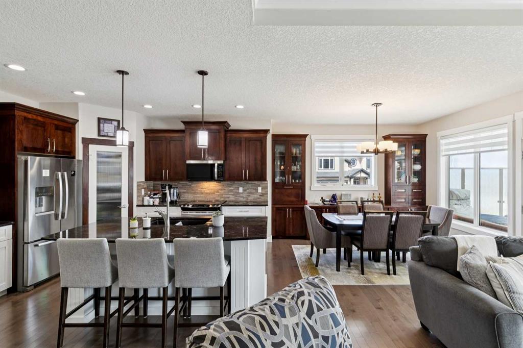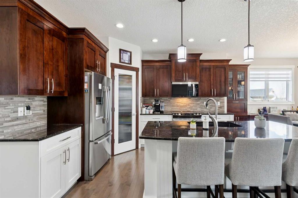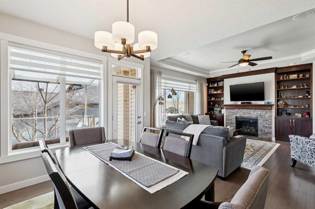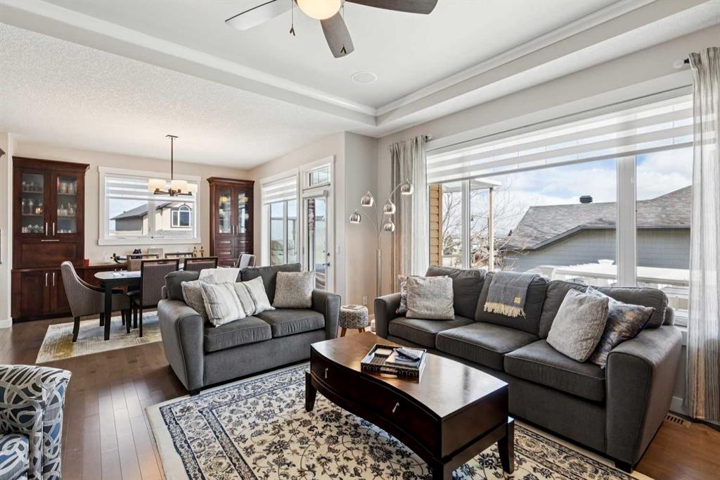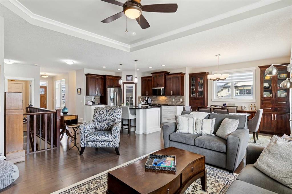 This immaculate high-end bungalow offers a well-planned layout, quality finishes, and a long list of upgrades throughout. Features include hardwood floors, high ceilings, extensive built-ins, and large triple-pane low-E windows that bring in excellent natural light. The open-concept main living area includes a fireplace with a built-in maple wall unit, while the kitchen features granite countertops, an undermount sink, maple cabinetry, and a bright eating nook with deck access. A front flex room or home office enjoys a mountain view, and the main floor also includes laundry with built-in cabinetry. The spacious primary bedroom offers a large walk-in closet and a well-appointed 5-piece ensuite. The fully finished basement features 9’ ceilings, large windows, a generous family room with space for a pool table, two additional bedrooms, a craft room, and a full bathroom. Energy-efficient details include a dual-zone high-efficiency furnace, low-flow fixtures, and R-50 attic insulation. Set on a large corner lot with a 24’ deep garage suitable for a truck, this is a clean, comfortable, and thoughtfully upgraded home.