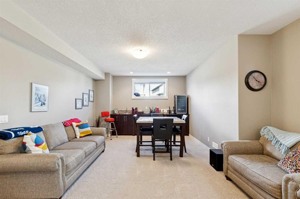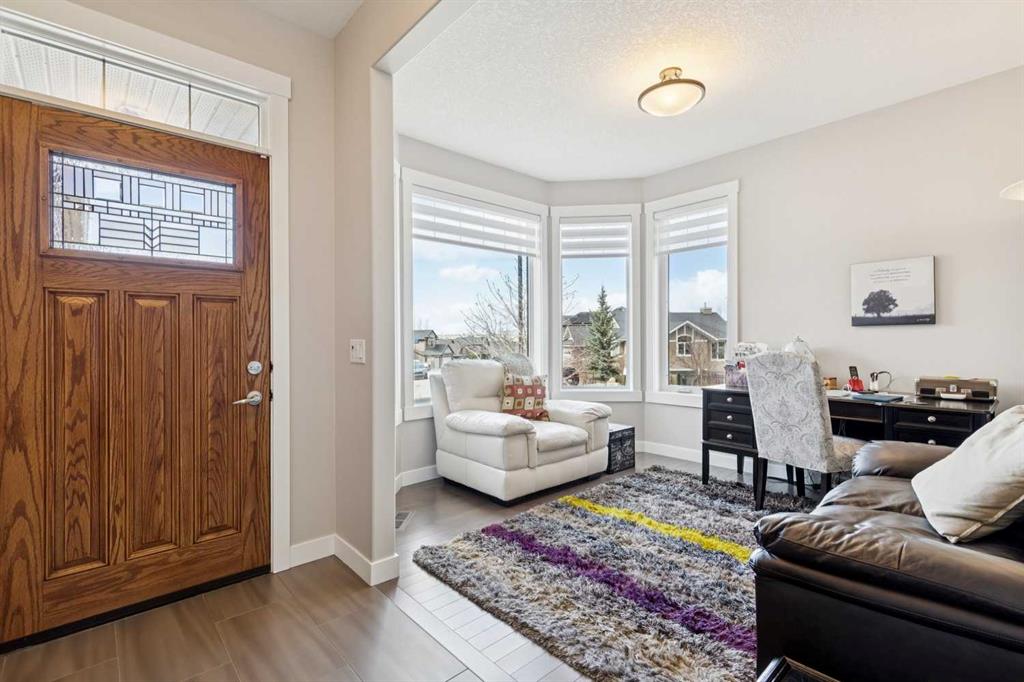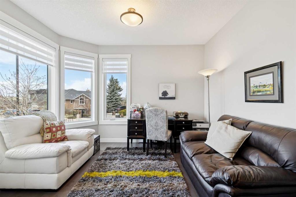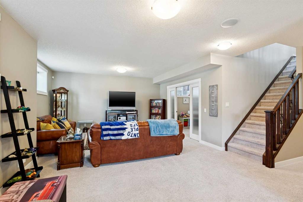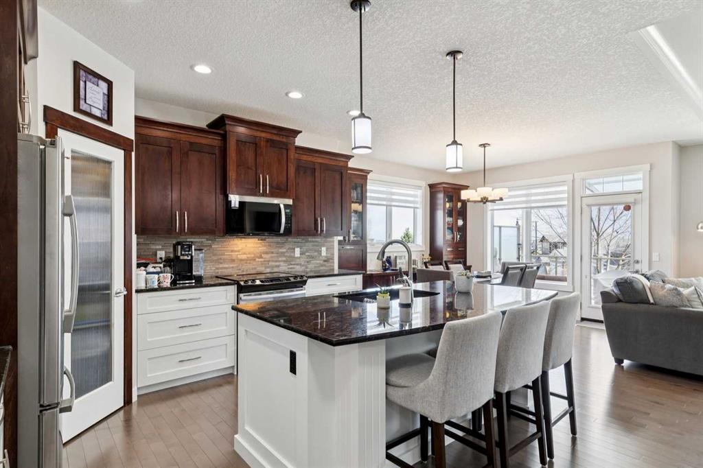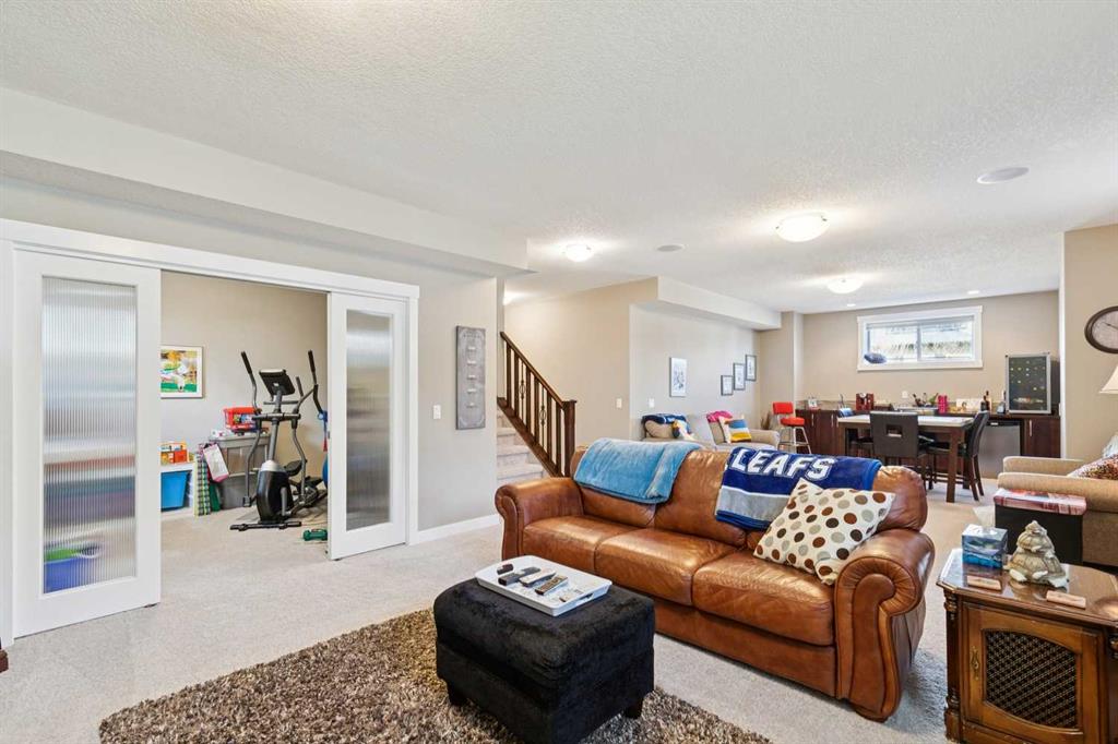 This immaculate high-end bungalow offers a well-planned layout, quality finishes, and a long list of upgrades throughout. Features include hardwood floors, high ceilings, extensive built-ins, and large triple-pane low-E windows that bring in excellent natural light. The open-concept main living area includes a fireplace with a built-in maple wall unit, while the kitchen features granite countertops, an undermount sink, maple cabinetry, and a bright eating nook with deck access. A front flex room or home office enjoys a mountain view, and the main floor also includes laundry with built-in cabinetry. The spacious primary bedroom offers a large walk-in closet and a well-appointed 5-piece ensuite. The fully finished basement features 9’ ceilings, large windows, a generous family room with space for a pool table, two additional bedrooms, a craft room, and a full bathroom. Energy-efficient details include a dual-zone high-efficiency furnace, low-flow fixtures, and R-50 attic insulation. Set on a large corner lot with a 24’ deep garage suitable for a truck, this is a clean, comfortable, and thoughtfully upgraded home.