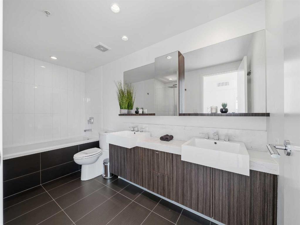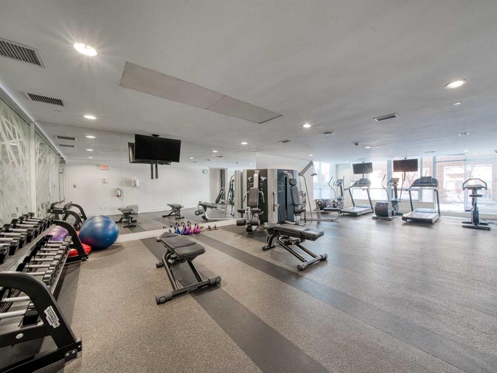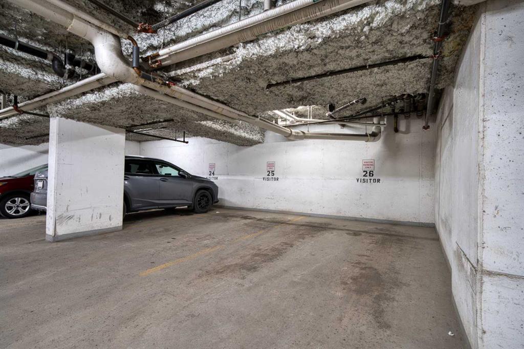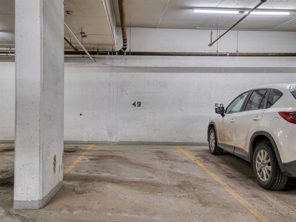 The second bedroom features floor-to-ceiling windows and can serve as a guest room or office. Flooring includes laminate throughout, carpet in the primary bedroom, and tile in both bathrooms.The balcony offers excellent city views and enough space for a patio set, with barbecues permitted. Additional features include in-unit storage near the entrance, a same-floor storage locker, and a titled heated underground parking stall. The building also provides heated visitor parking and bicycle storage, with convenient 2-hour street parking out front. Building amenities include a fitness centre, yoga studio, guest suite (available for $75/night), and concierge from Tuesday through Saturday for deliveries and added security and convenience. A well-designed, quiet, and spacious unit in one of downtown Calgary’s most desirable buildings.