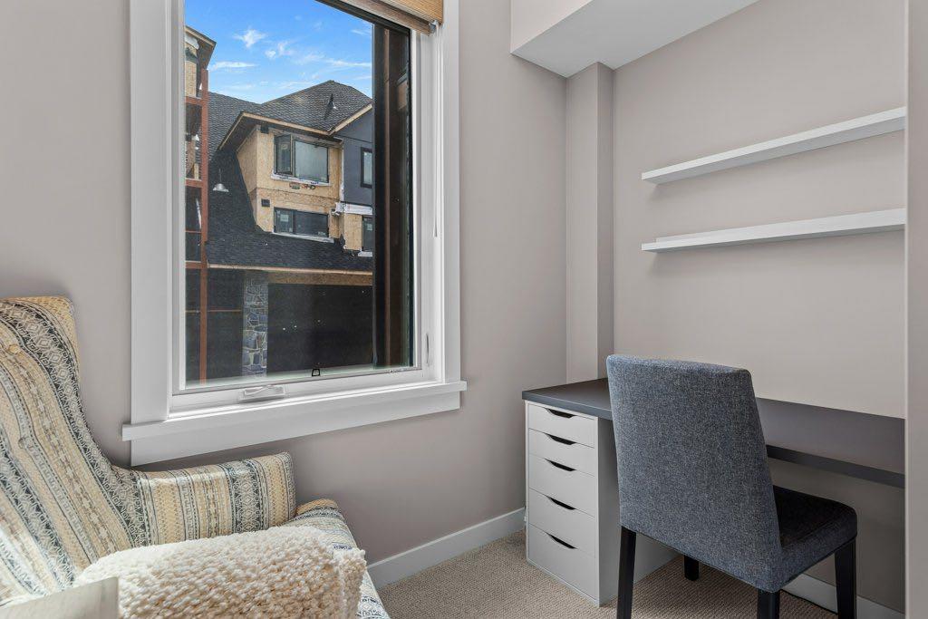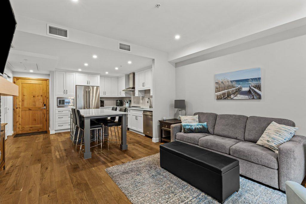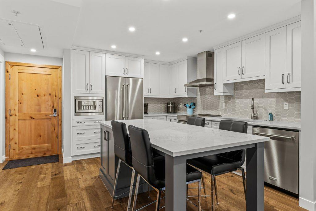 Immaculate South-Facing Condo with Trail Access & Rooftop Amenities – Unbeatable Location! Welcome to your dream home in one of Canmore’s most sought-after locations—just steps from the scenic creek paths, Bridgette Bar, and the heart of downtown! This sun-drenched, south-facing unit features a private walkout deck that opens directly to the trails, perfect for morning coffee or evening strolls. Inside, you’ll find an open-concept layout with an induction cooktop, sleek modern kitchen, and a dedicated private office. The huge primary bedroom offers space, comfort, and natural light, while the spa-inspired bathroom and in-suite laundry add convenience and luxury. Parking is a breeze with a great parking stall & storage locker included. Residents enjoy top-tier amenities: Rooftop hot tub with stunning mountain views, Fully-equipped fitness centre, Modern gathering room for events or relaxing.